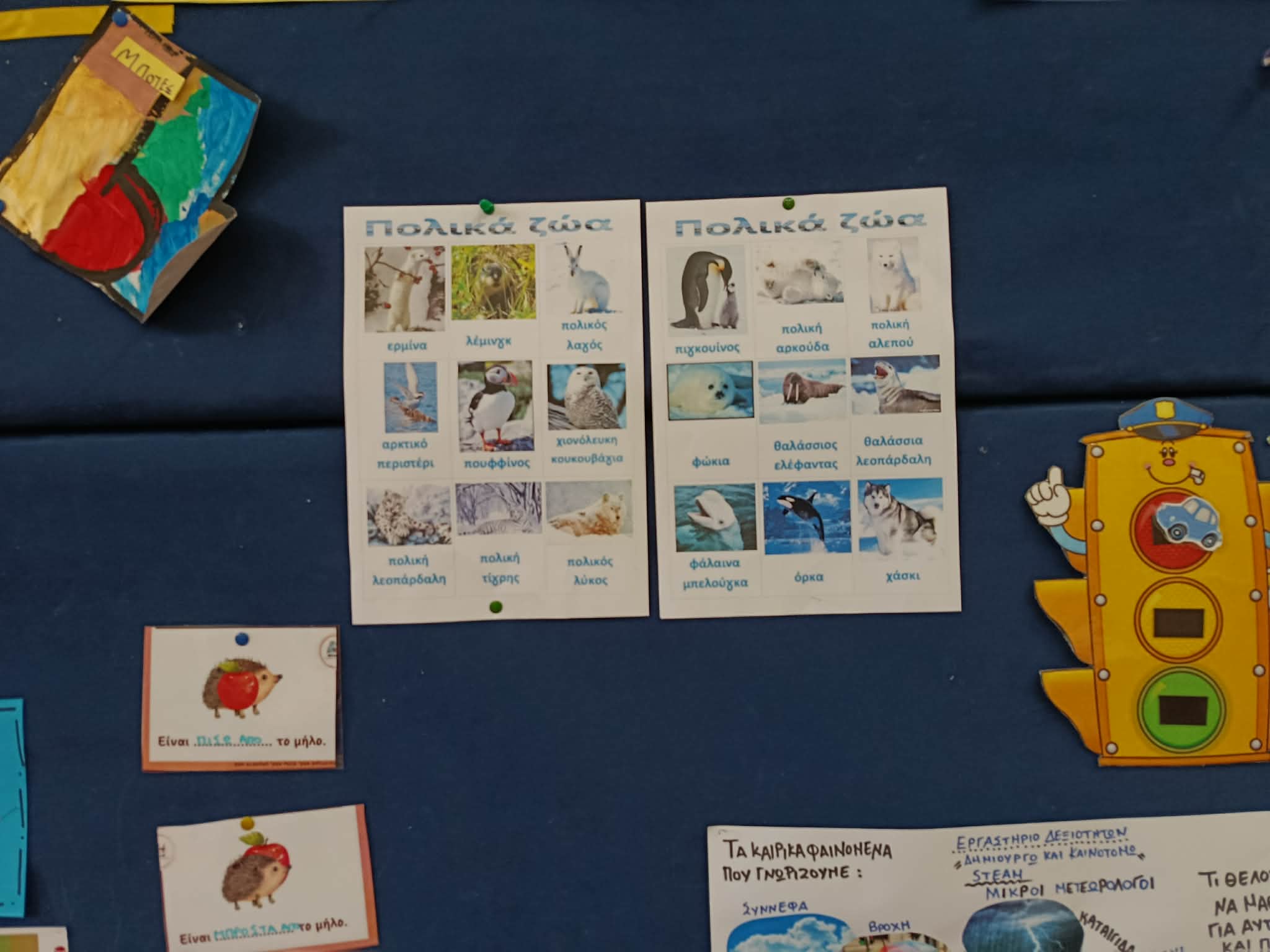 Παράλληλα, το «ταξίδι» με το Bee-Bot αποτέλεσε την αφορμή για μια παιχνιδιώδη επανάληψη των χρωμάτων. Κεντρικός στόχος ήταν η εμπέδωση των χρωματικών εννοιών μέσα από τη δράση και τη συσχέτιση. Τα νήπια συμμετείχαν ενεργά στη διαδικασία, αναζητώντας στις γωνιές της τάξης αντικείμενα (όπως φρούτα, λαχανικά, παιχνίδια και εργαλεία) που ταυτίζονταν χρωματικά με τις καρτέλες.