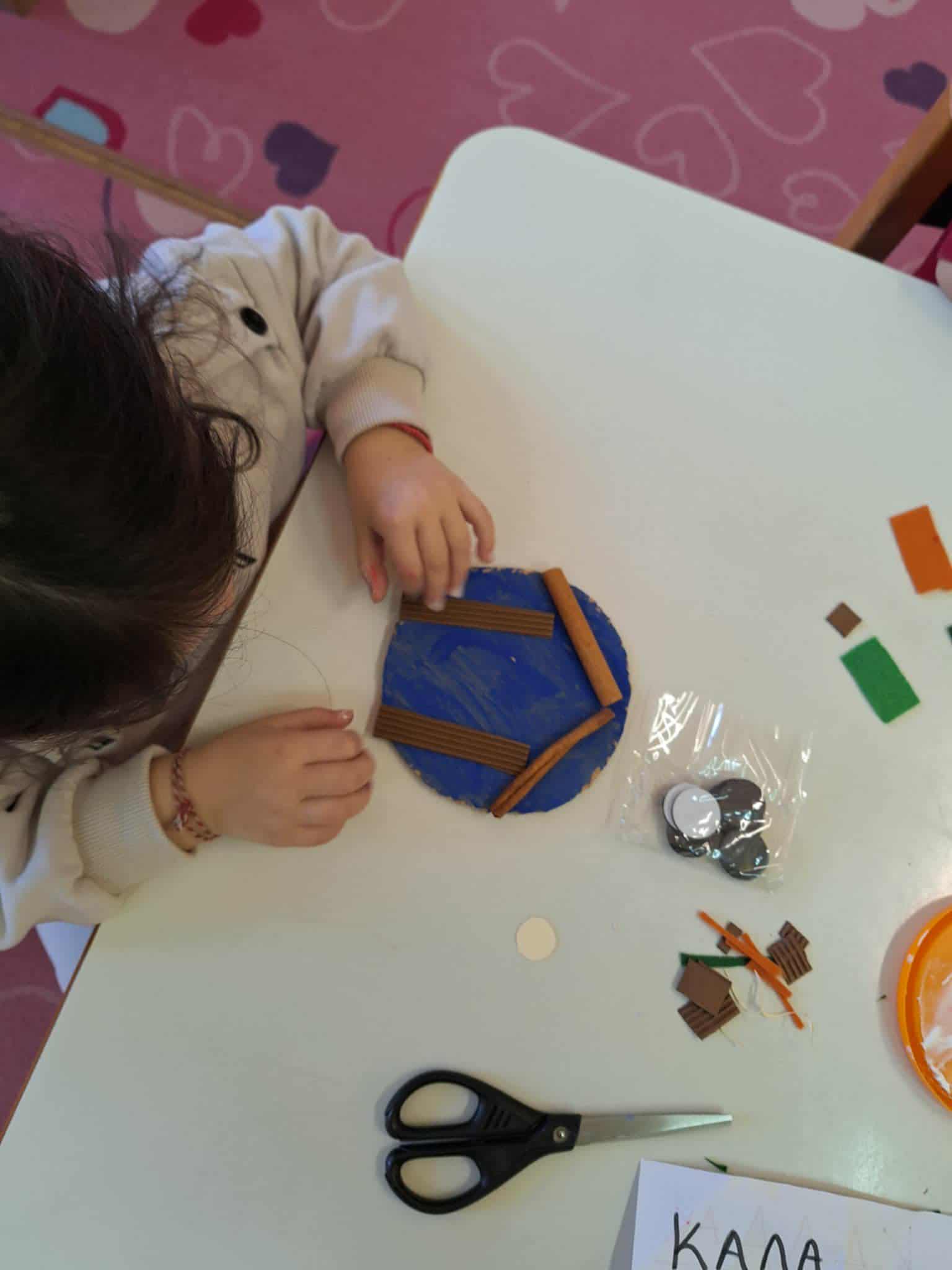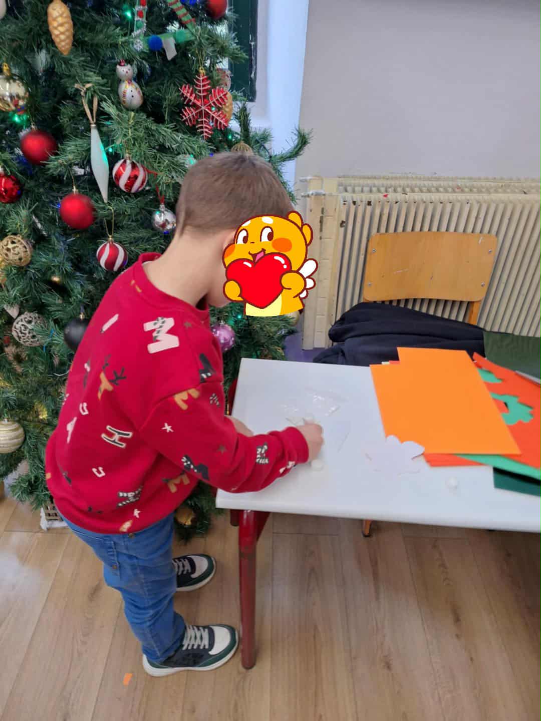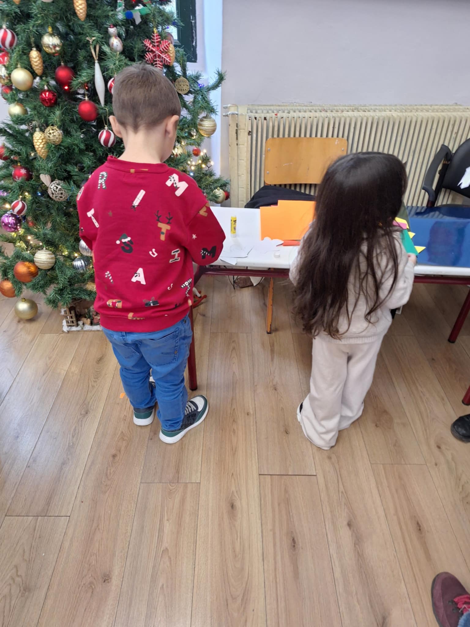 Μέσα από αυτή τη διαδικασία των χριστουγεννιάτικων κατασκευών, επιδιώξαμε την καλλιέργεια της λεπτής κινητικότητας και της οπτικοκινητικής συναρμογής, καθώς τα παιδιά χρησιμοποίησαν τα δάχτυλα και τα χέρια τους με ακρίβεια για να βάψουν, να κολλήσουν και να διακοσμήσουν, ενισχύοντας ταυτόχρονα τη δημιουργικότητα, την έκφραση συναισθημάτων και την εξοικείωση με το χριστουγεννιάτικο πνεύμα και τα σύμβολά του.