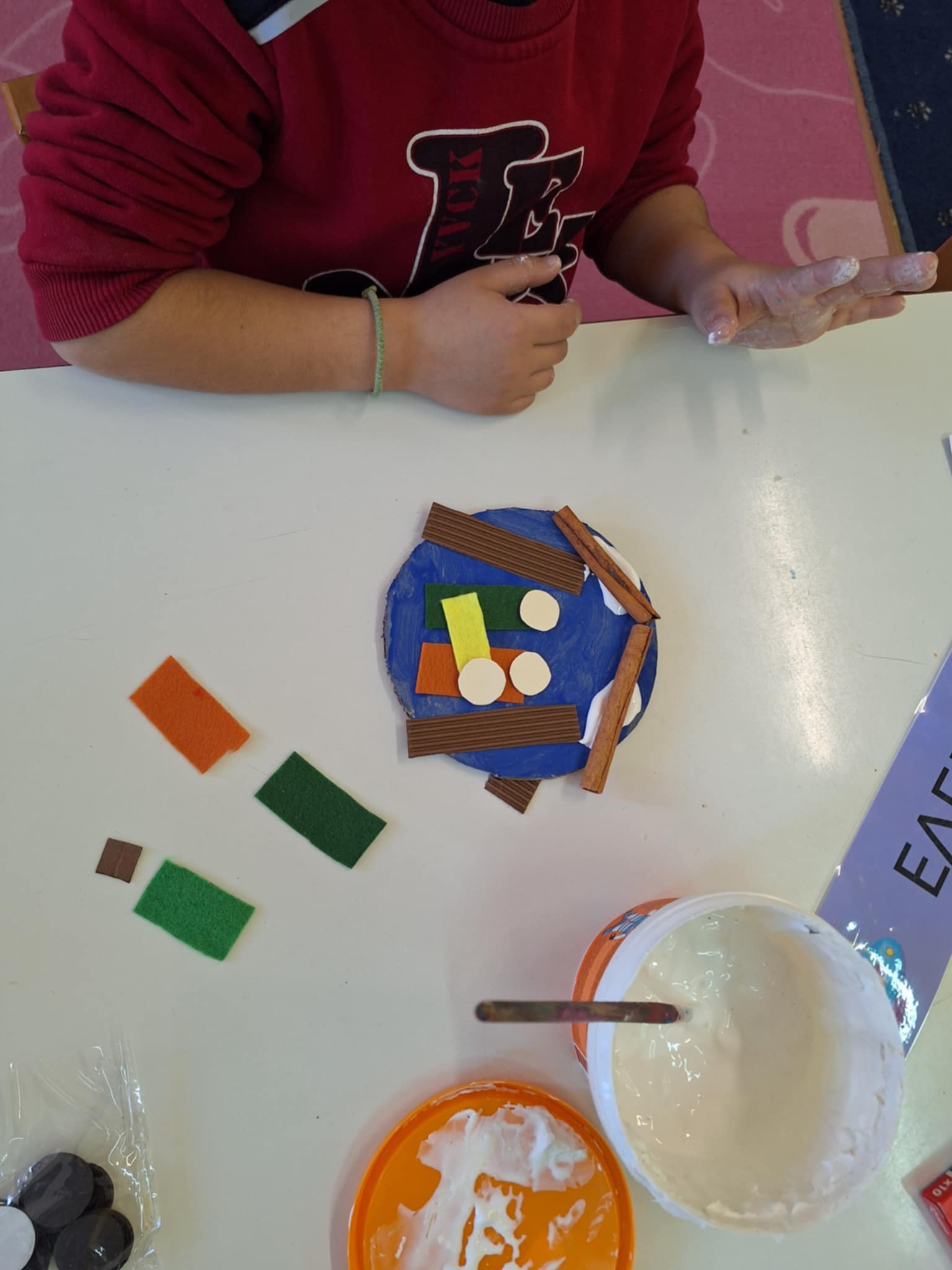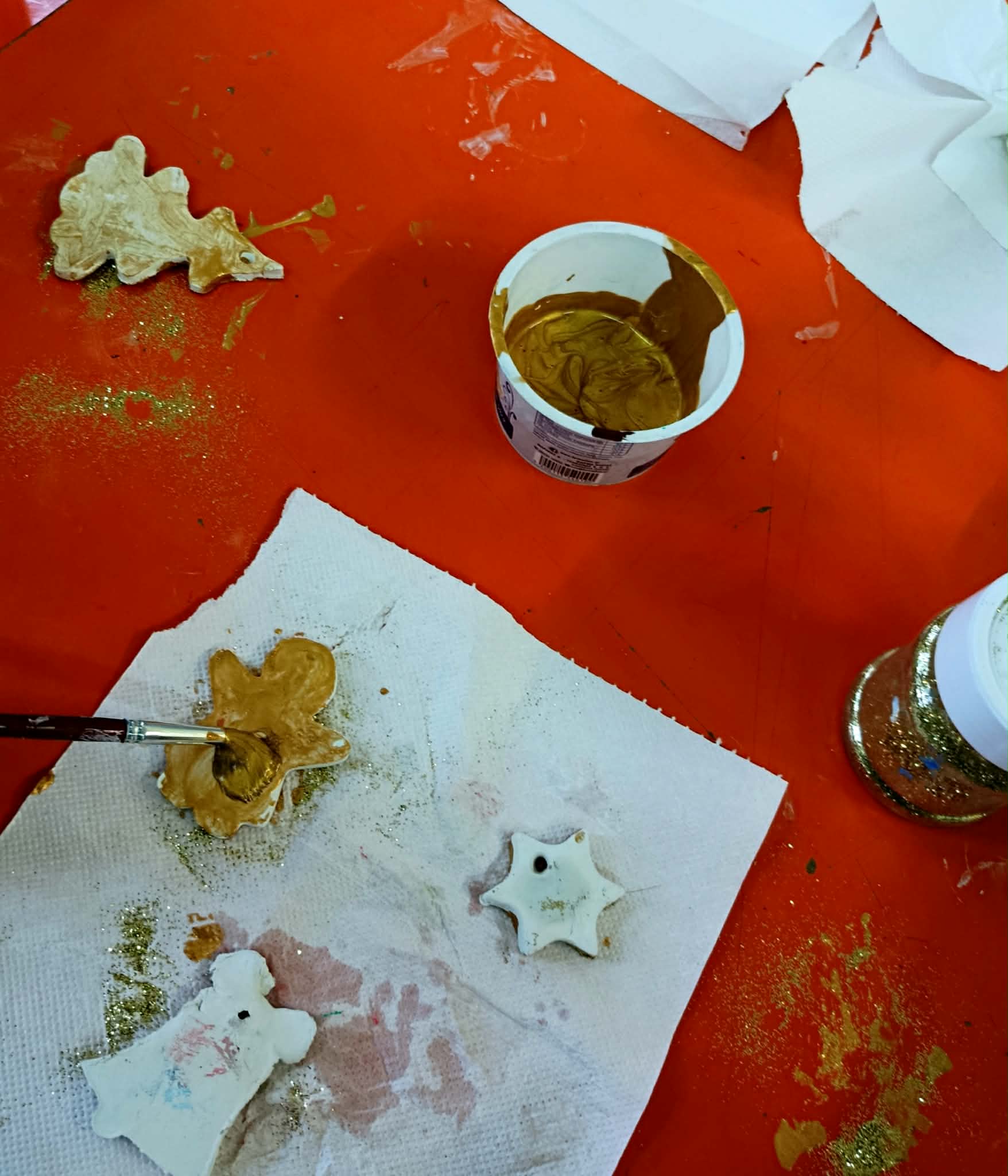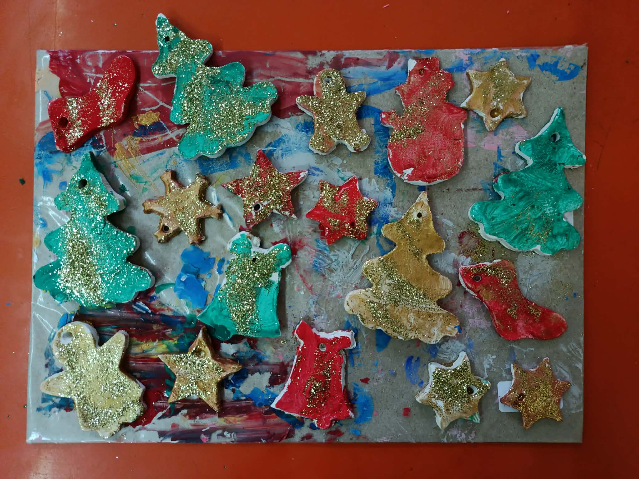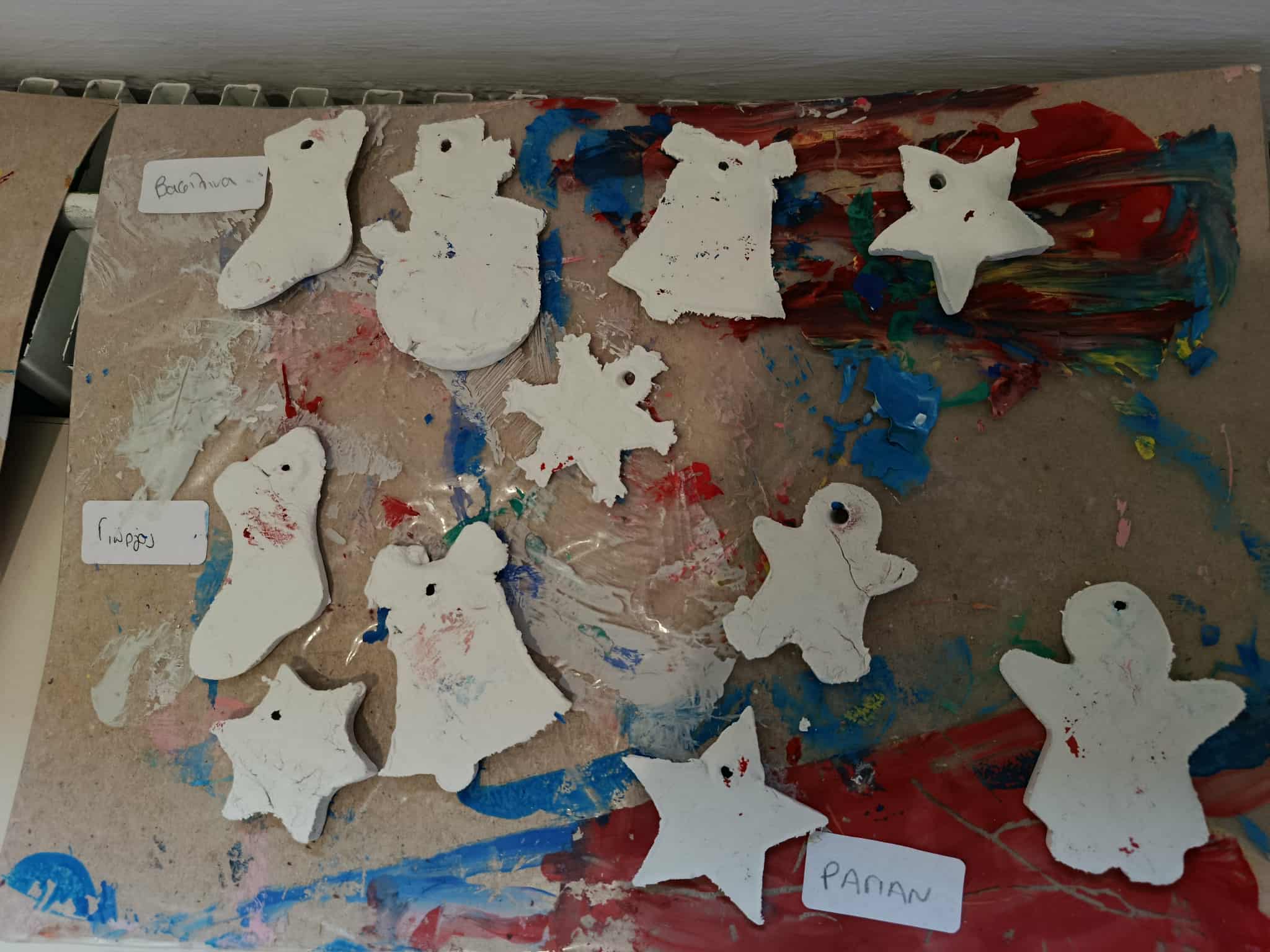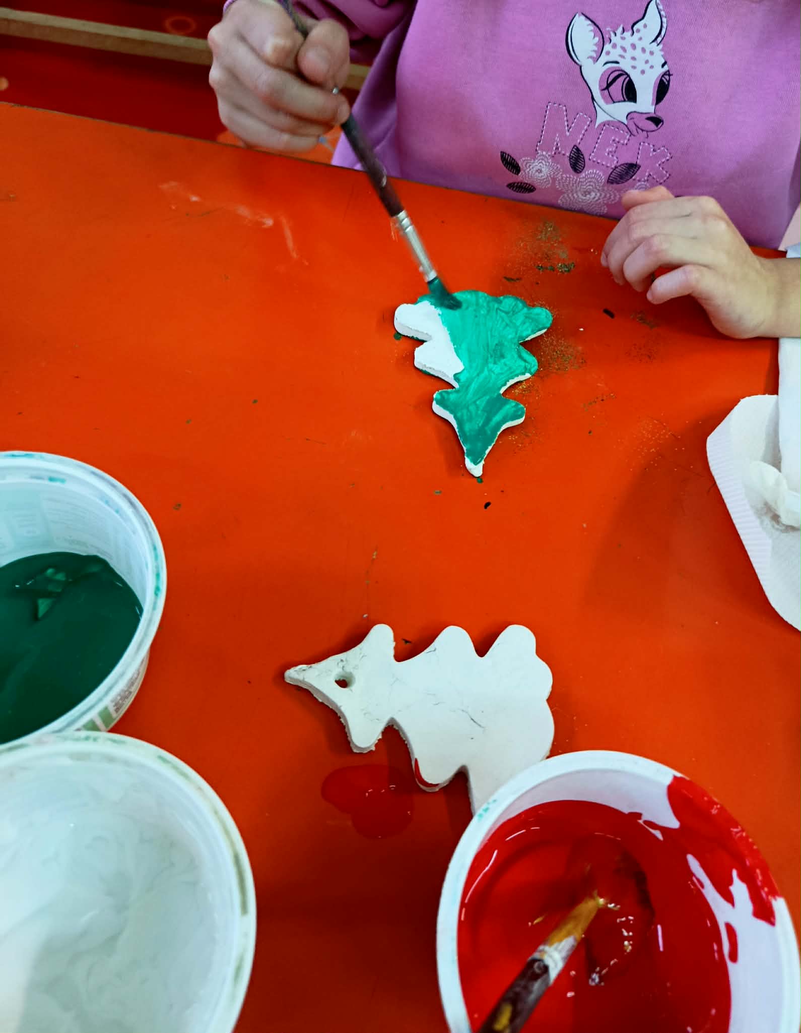 Με μεγάλη χαρά, τα παιδιά μας έβαψαν και διακόσμησαν στολίδια φτιαγμένα από πηλό, δίνοντας ζωή σε μοναδικές δημιουργίες.