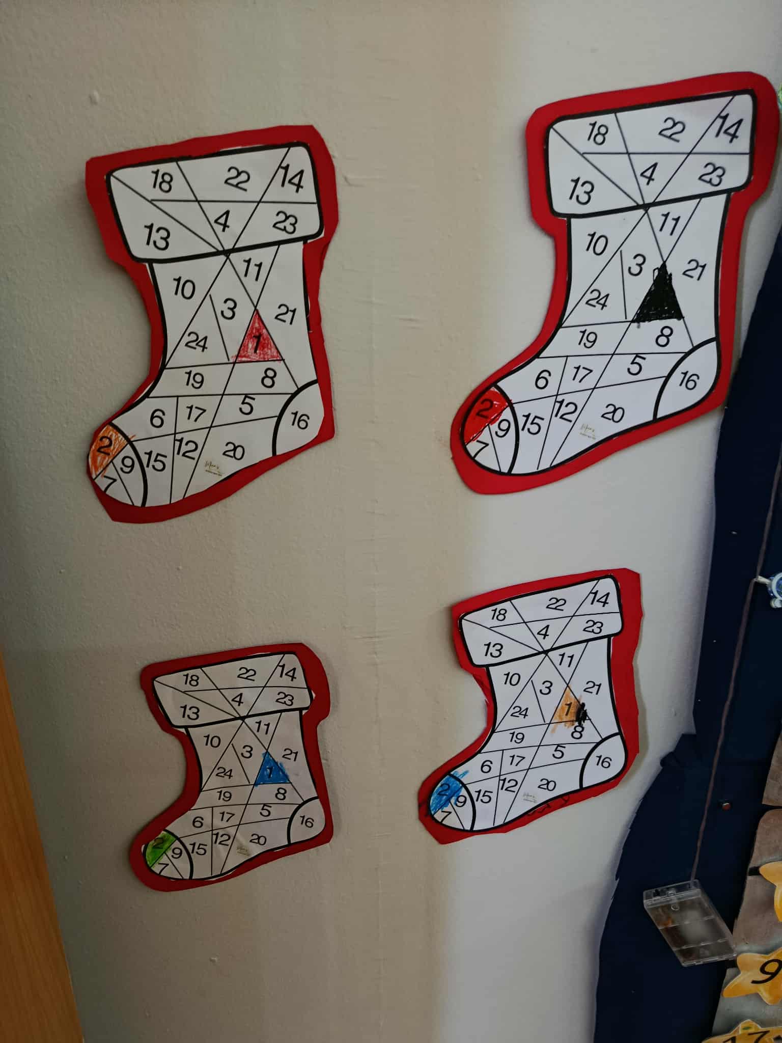 Τέλος, για να μετρήσουν αντίστροφα τις ημέρες μέχρι την έλευση των Χριστουγέννων, κατασκεύασαν τις δικές τους αγιοβασιλιάτικες μπότες. Επίσης, ένα όμορφο έλατο αναδύθηκε στο παράθυρο της τάξης και στολίστηκε με μπάλες που ζωγράφισαν τα παιδιά.