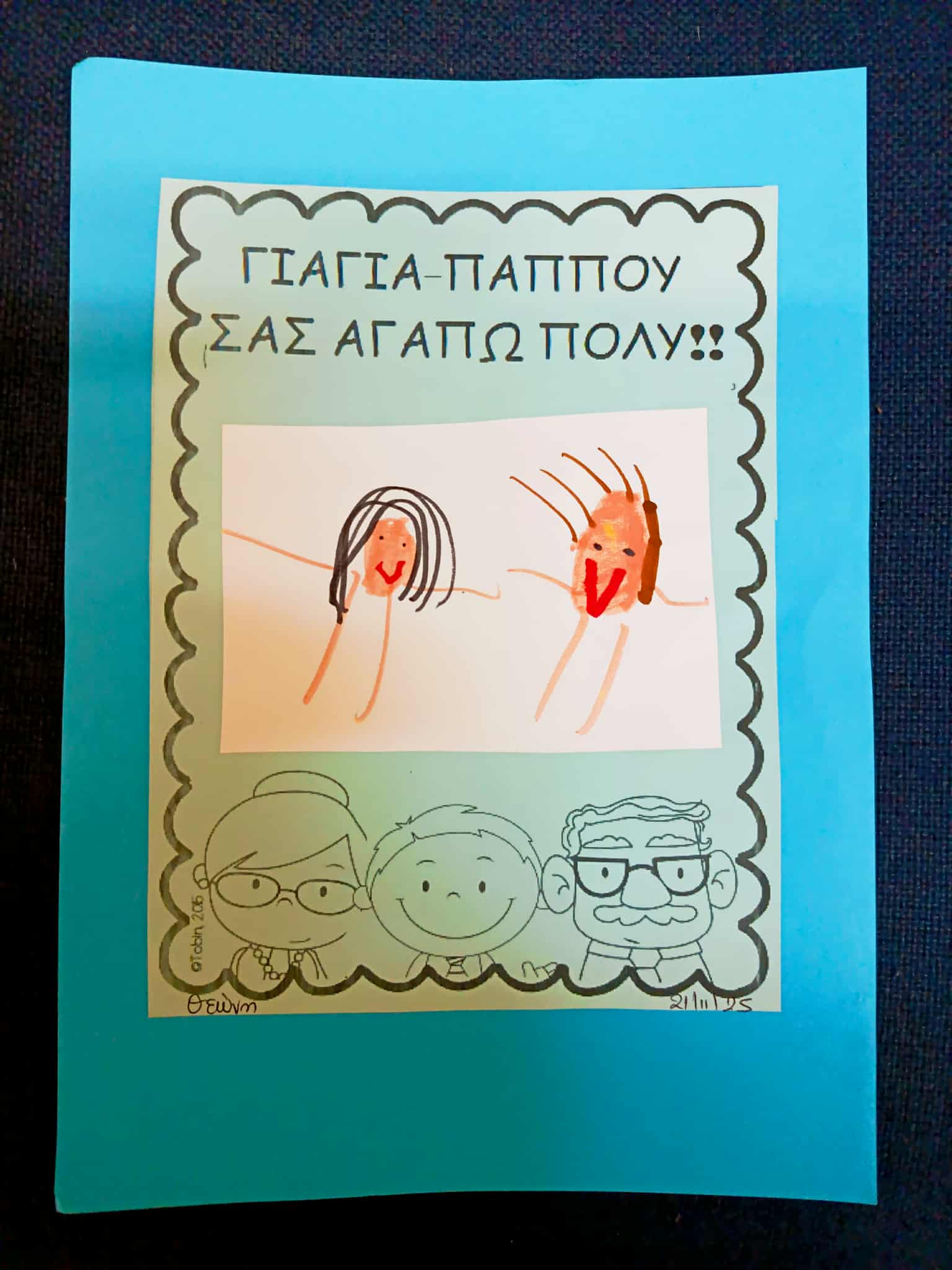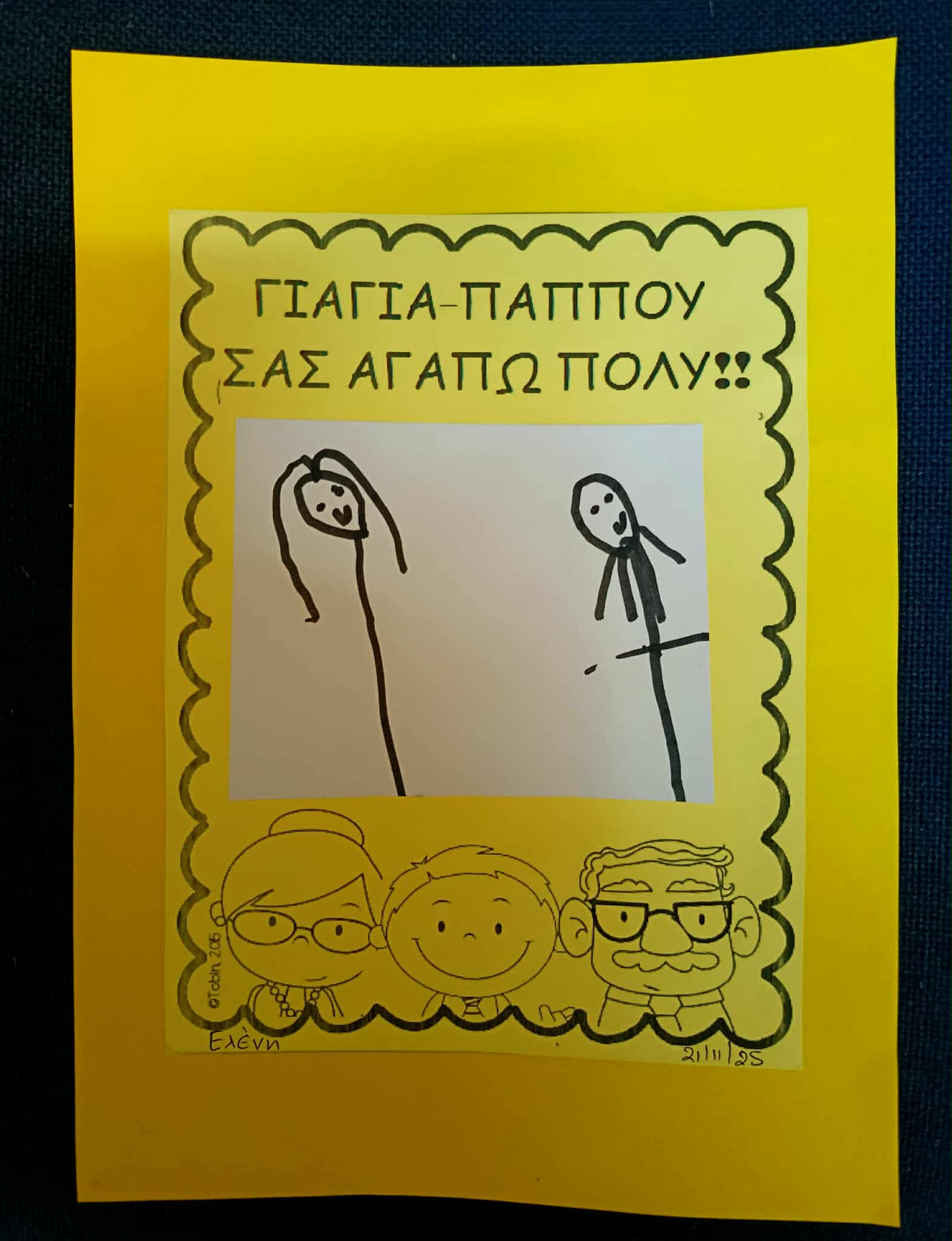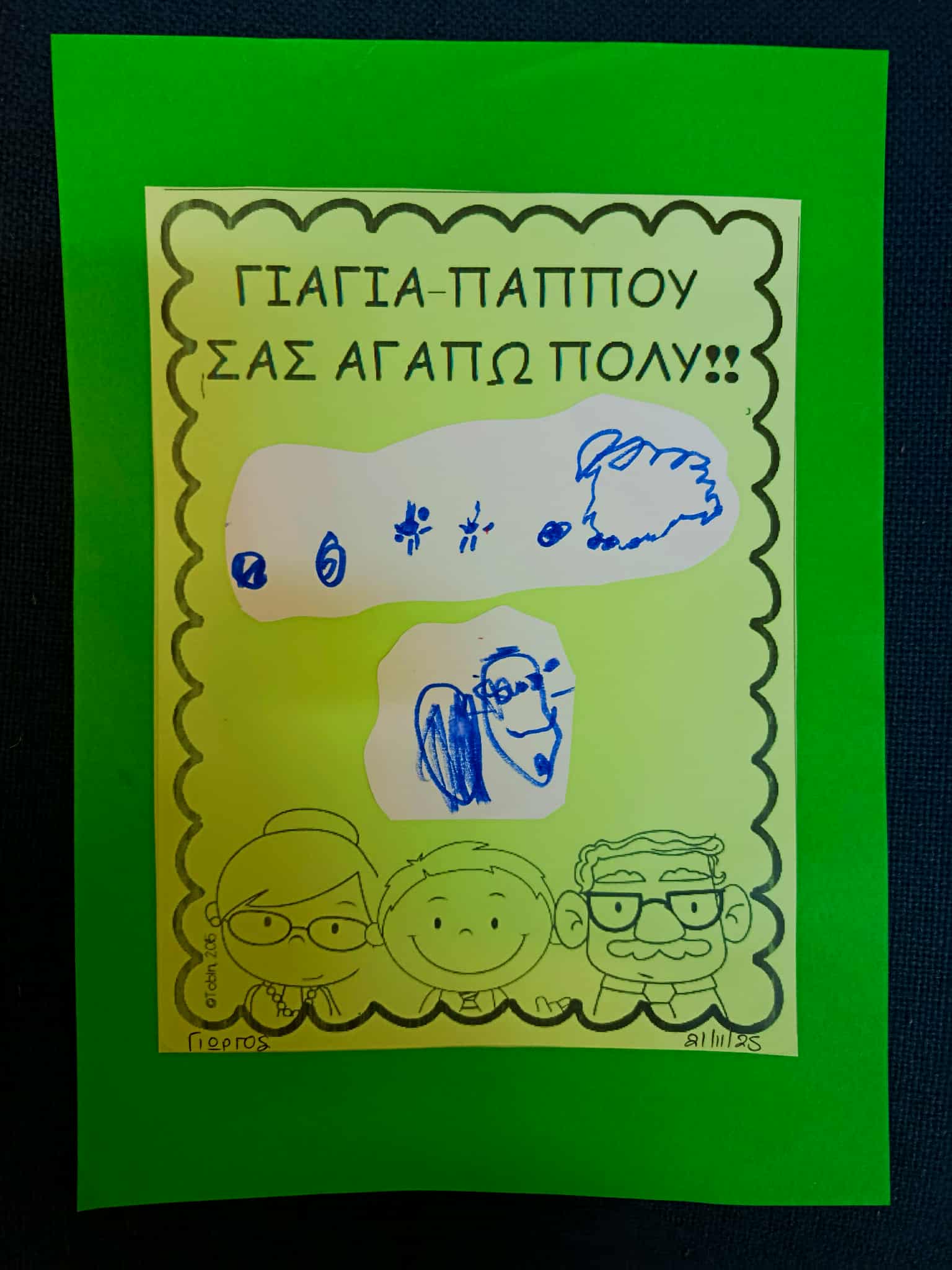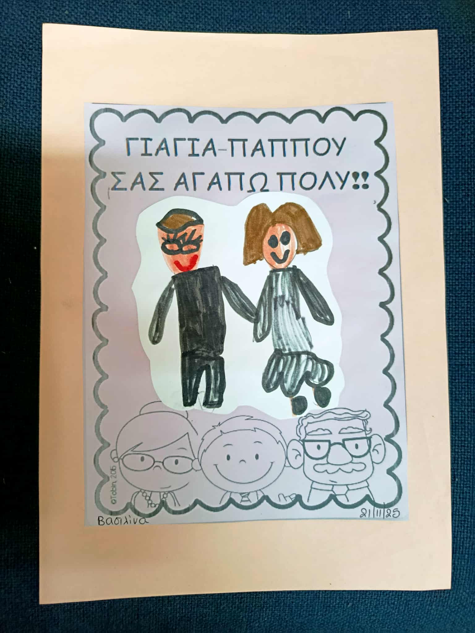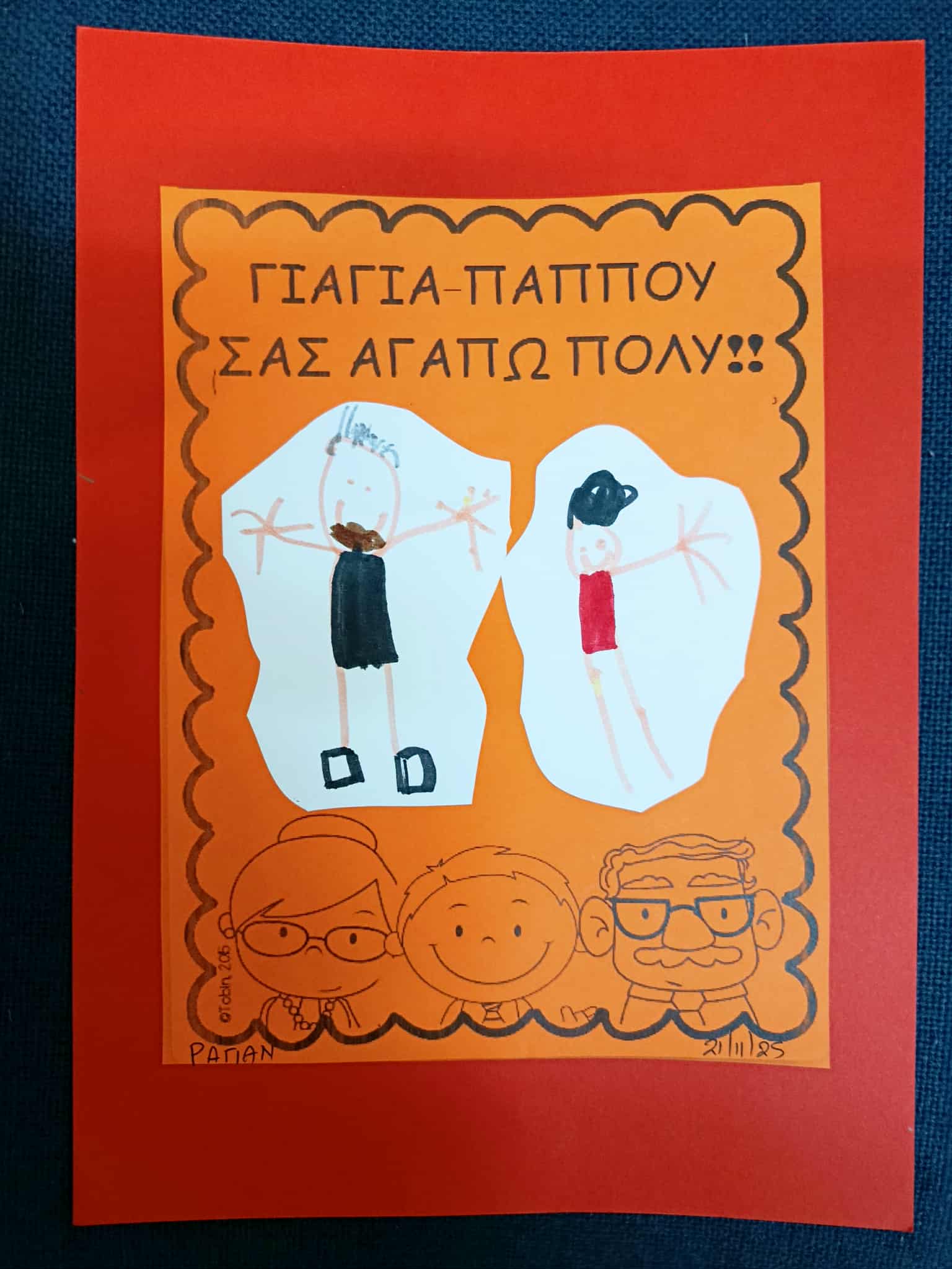 Το Δώρο μας: Ακολούθησε η κατασκευή του δώρου, μιας κορνίζας-ενθυμίου, στην οποία τα παιδιά κόλλησαν τη φωτογραφία του παππού/γιαγιάς και έγραψαν τη φράση «Σε αγαπώ». Με αυτό τον τρόπο, τα παιδιά προσέφεραν ένα χειροπιαστό δείγμα ευγνωμοσύνης, ενισχύοντας τους οικογενειακούς δεσμούς.