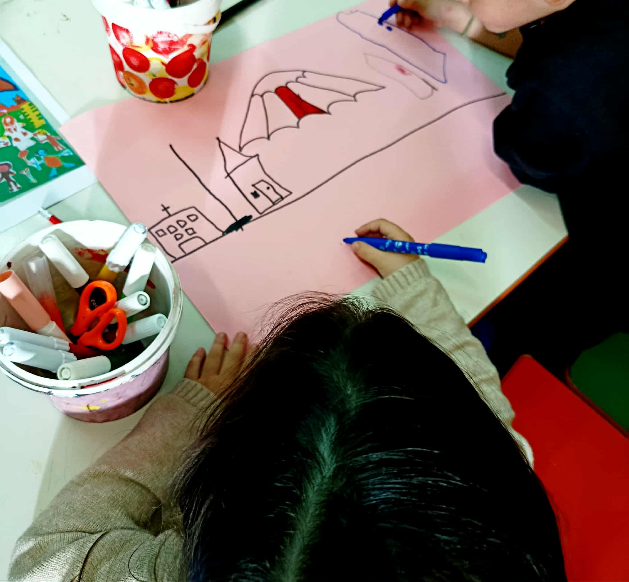Η δράση επικεντρώθηκε στην μεταφορά γνώσης και παράδοσης. Η γιαγιά μας μίλησε για τα παιχνίδια του χθες, τις κούκλες που έφτιαχναν από τενεκεδάκια και τα ατελείωτα παιχνίδια στην αυλή, και μας αποκάλυψε ένα πολύτιμο μυστικό της παραδοσιακής κουζίνας: τη συνταγή για τις χειροποίητες χυλοπίτες!