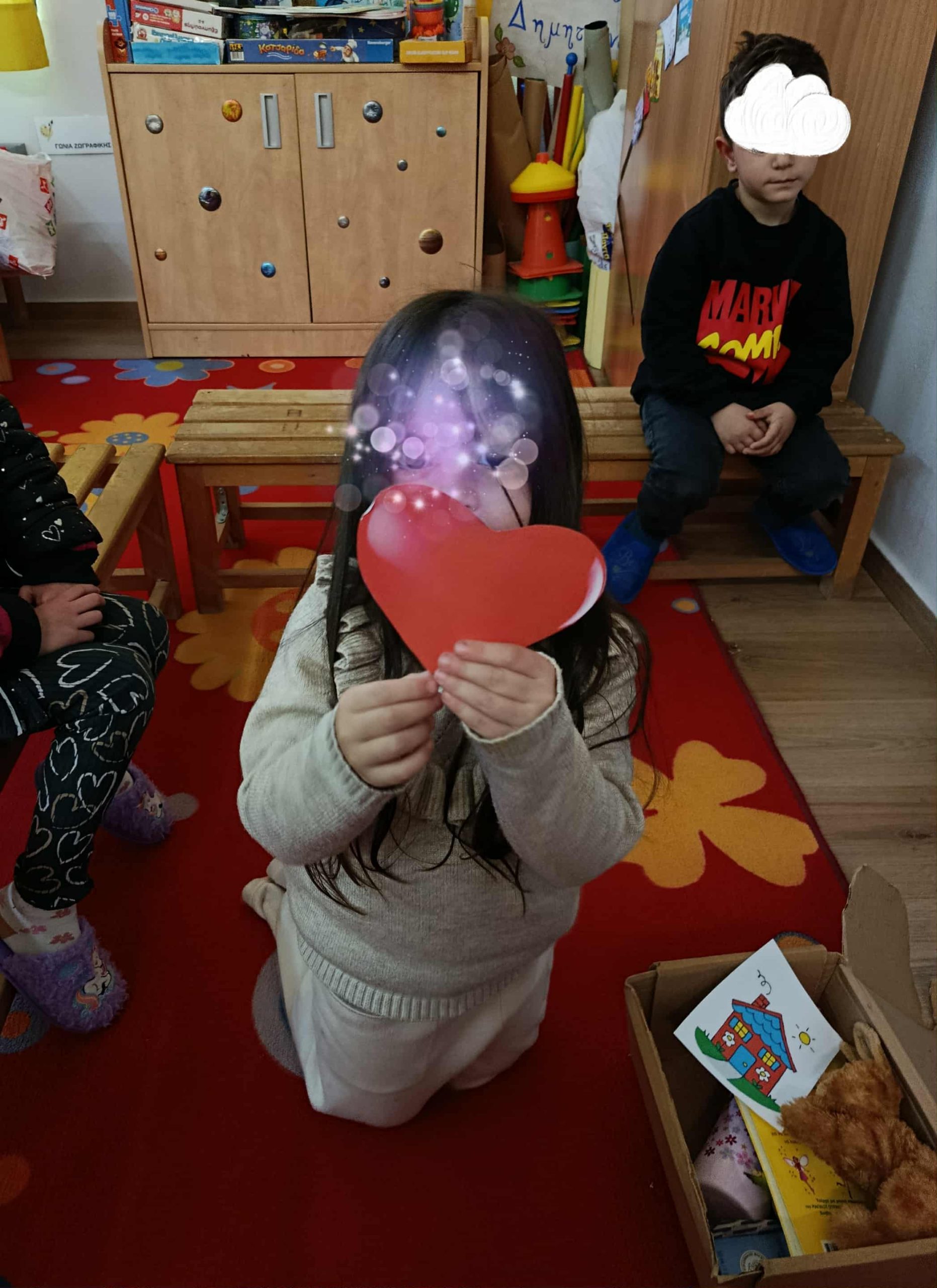 Τα νήπια άκουσαν το παραμύθι “Να σε κάνω μια αγκαλιά;” της Φρόσως Φωτεινάκη και κατανόησαν την έννοια του αυτοσεβασμού και του δικαιώματος στην επιλογή. Η τρυφερή ιστορία βοήθησε τα παιδιά να αναγνωρίσουν ότι το σώμα τους ανήκει μόνο στα ίδια και ότι έχουν τη δύναμη να θέσουν τα όριά τους. Κατανόησαν ότι δεν είναι όλες οι αγκαλιές ίδιες: υπάρχουν οι «Αγκαλιές της Χαράς» που τις επιζητούμε και μας γεμίζουν δύναμη, αλλά και οι «Αγκαλιές της Δυσφορίας» που μας κάνουν να νιώθουμε άβολα, να ντρεπόμαστε ή να αγχωνόμαστε.