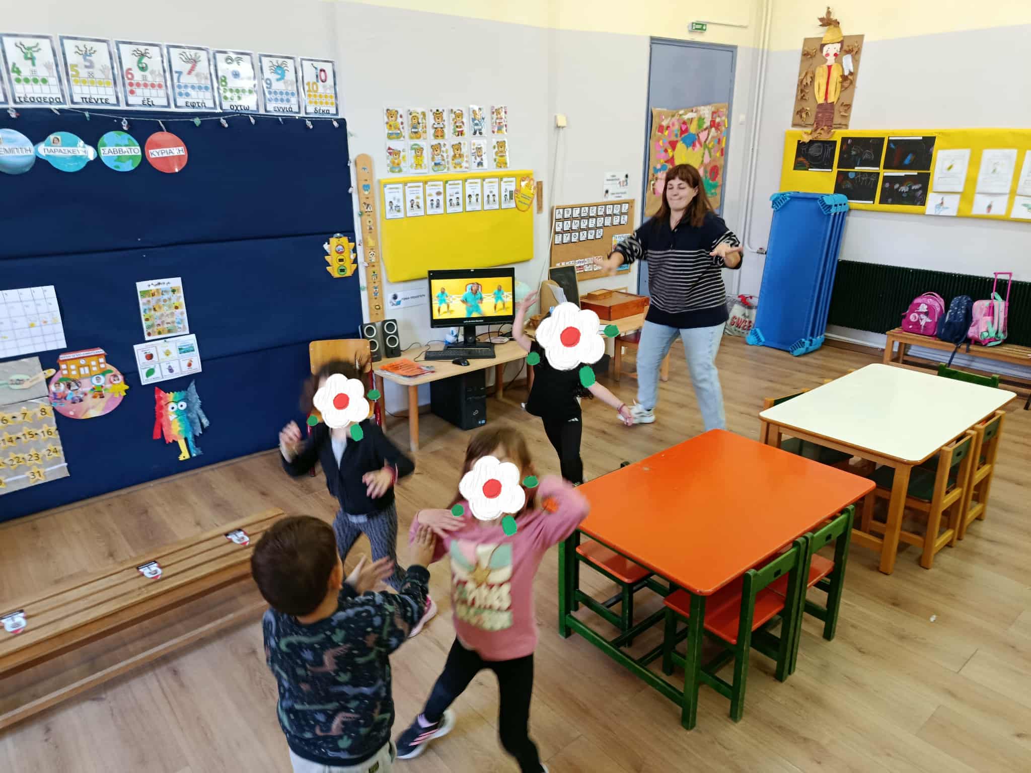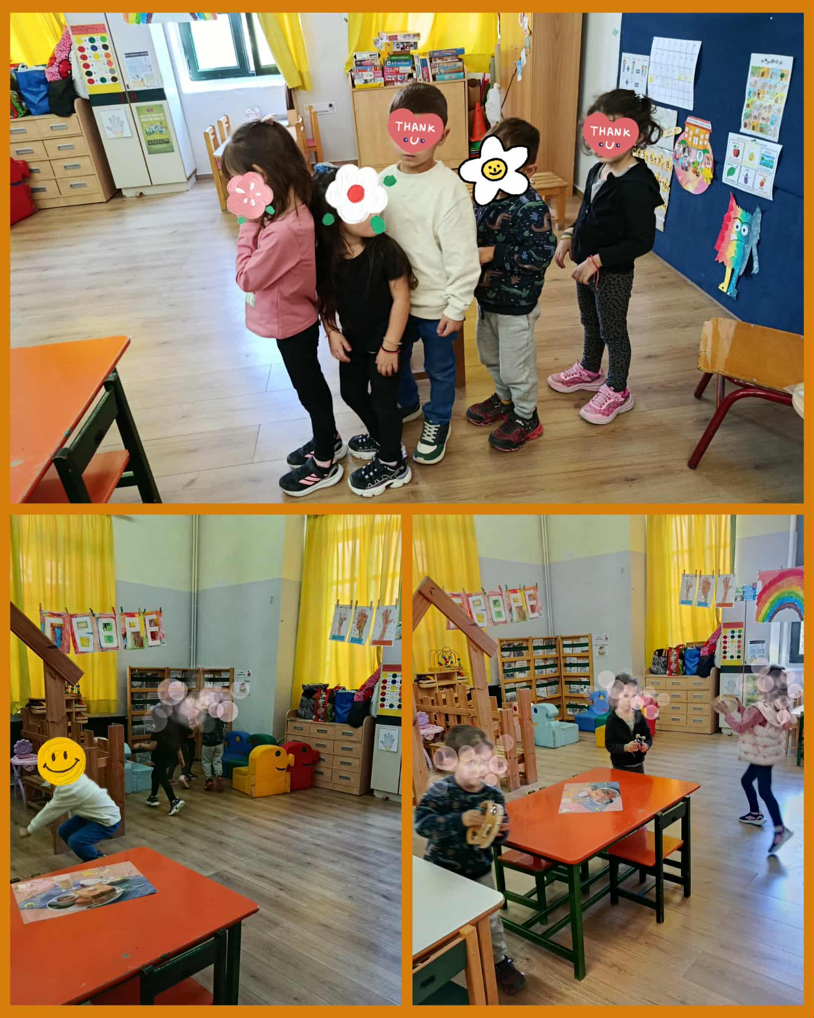 Στη συνέχεια, εξετάσαμε τα ονόματά μας, με σκοπό την εισαγωγή στην έννοια της ταυτότητας και την αναγνώριση των αρχικών γραμμάτων. Αυτή η παρατήρηση έδωσε την ευκαιρία να μιλήσουμε για τον τρόπο επικοινωνίας των ατόμων που αντιμετωπίζουν σωματικές δυσκολίες, επιδιώκοντας την κατανόηση της αναπηρίας και την αναζήτηση εναλλακτικών μορφών επικοινωνίας και αποδοχής. Έτσι, αναζητήσαμε στο διαδίκτυο την αναπαράσταση του αρχικού μας γράμματος στη Νοηματική Γλώσσα, έχοντας σκοπό την εξοικείωση με τη Νοηματική ως πλήρη γλώσσα και την εμπέδωση της ιδέας ότι οι κινήσεις των χεριών αποτελούν ένα αποτελεσματικό μέσο επικοινωνίας.