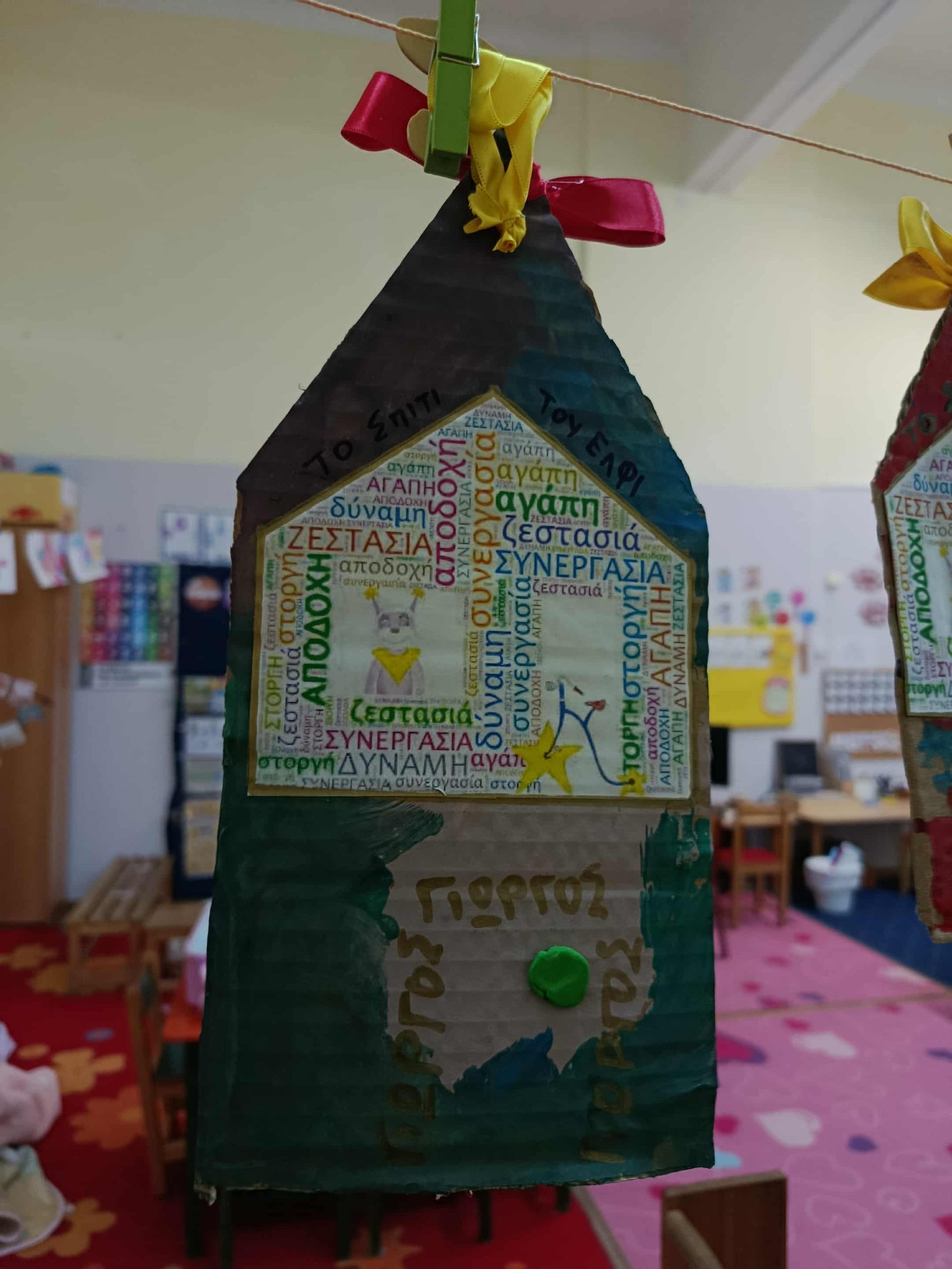 Μετά την επιτυχημένη παρουσίαση των προσωπικών τους φωτογραφιών, οι οποίες ζωντάνεψαν αγαπημένες γωνιές και δραστηριότητες, τα παιδιά εμπνεύστηκαν την ιδέα να δημιουργήσουν ένα δικό τους τραγούδι, αφιερωμένο στην οικογένειά τους. Η διαδικασία ξεκίνησε συλλογικά, με τα παιδιά να εκφράζουν ελεύθερα τις σκέψεις και τα συναισθήματά τους για τους δικούς τους ανθρώπους. Οι ιδέες αυτές ηχογραφήθηκαν, καταγράφηκαν, και στη συνέχεια, με την καθοδήγηση της εκπαιδευτικού, η ομάδα εργάστηκε συνεργατικά για να ταιριάξει τις λέξεις και τις προτάσεις, δομώντας τους στίχους ώστε να αποκτήσουν ρυθμό και νόημα, μετατρέποντας τις αυθόρμητες εκφράσεις σε ένα ολοκληρωμένο ποιητικό κείμενο.