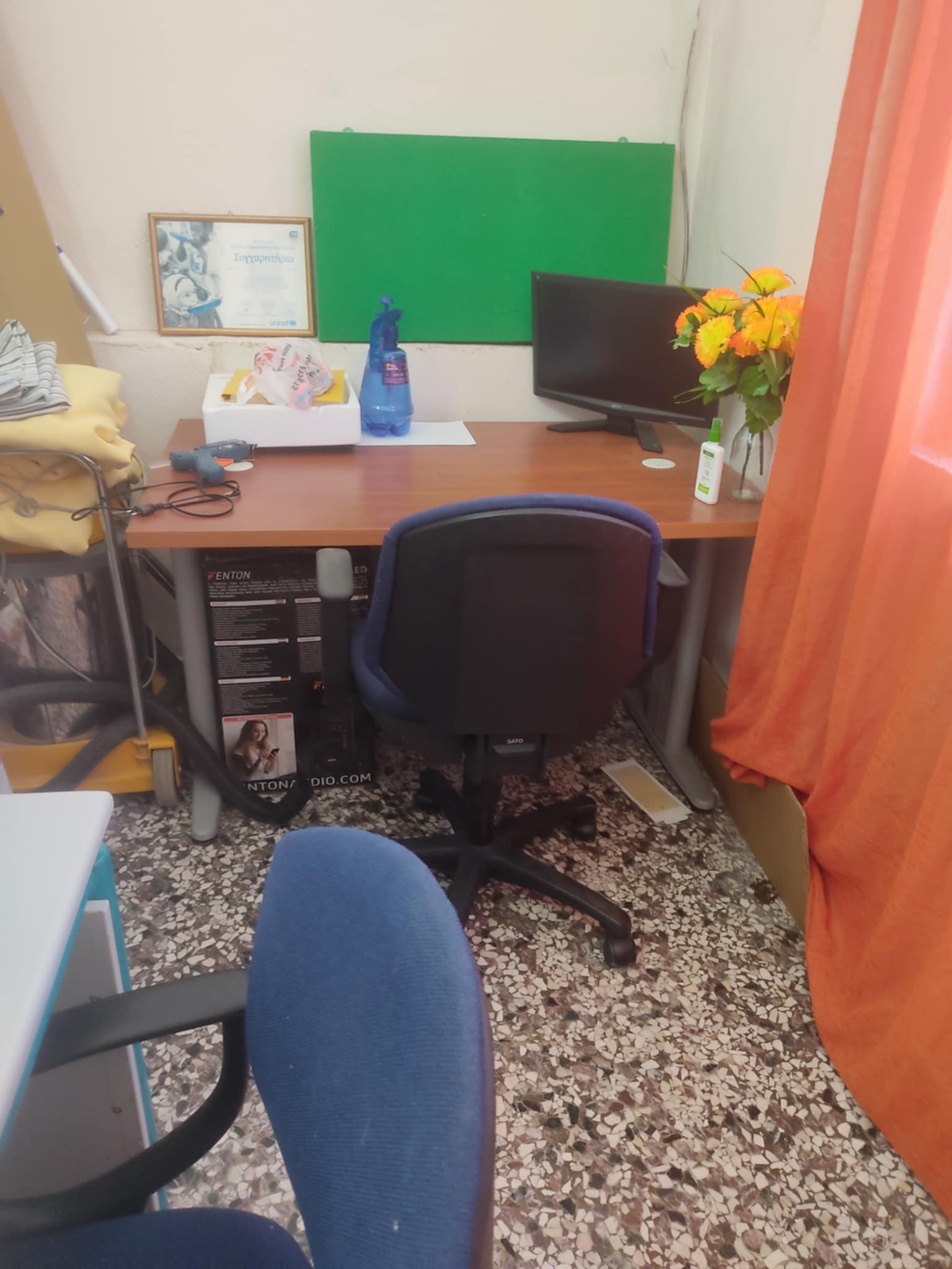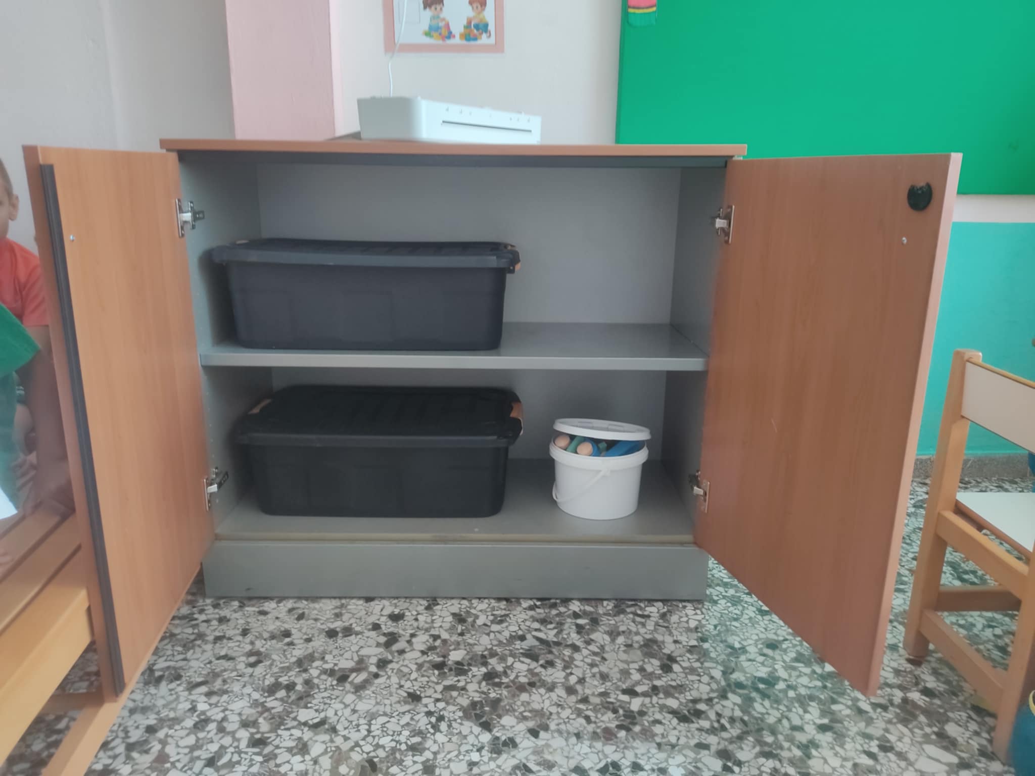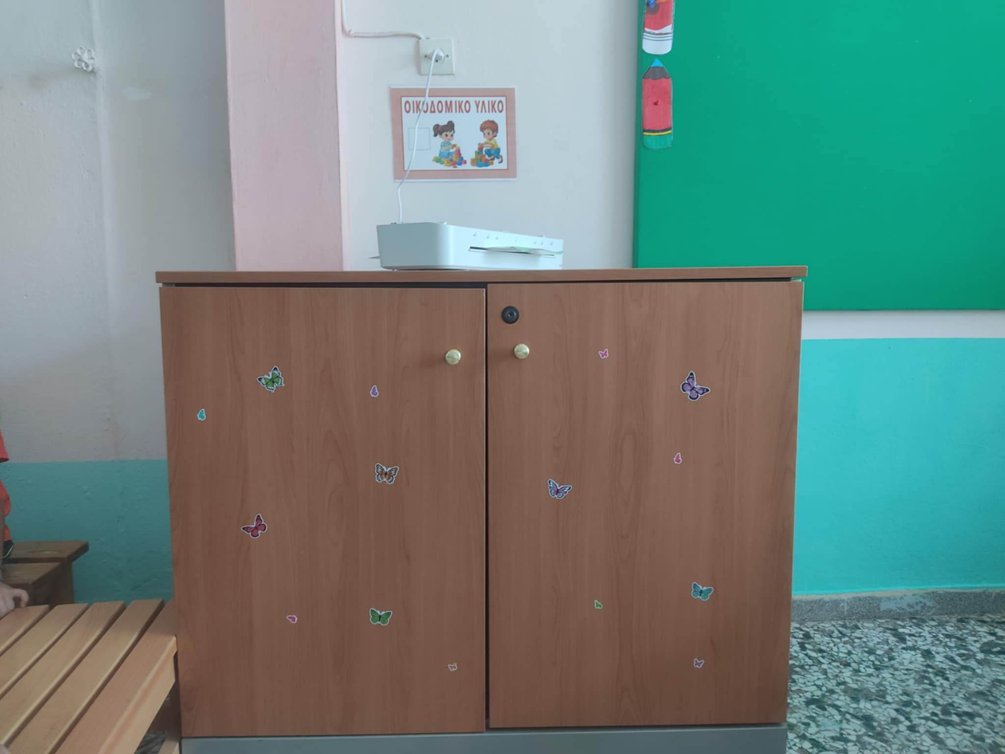 Επίσης ο εσωτερικός χώρος του σχολείου μας εφοδιάστηκε με αποθηκευτικούς χώρους ( μικρές και μεγάλες ντουλάπες, συρταριέρες ), δυο σταθερούς ηλεκτρονικούς υπολογιστές και ένα γραφείο. Μια ευγενική προσφορά της EYROBANK.