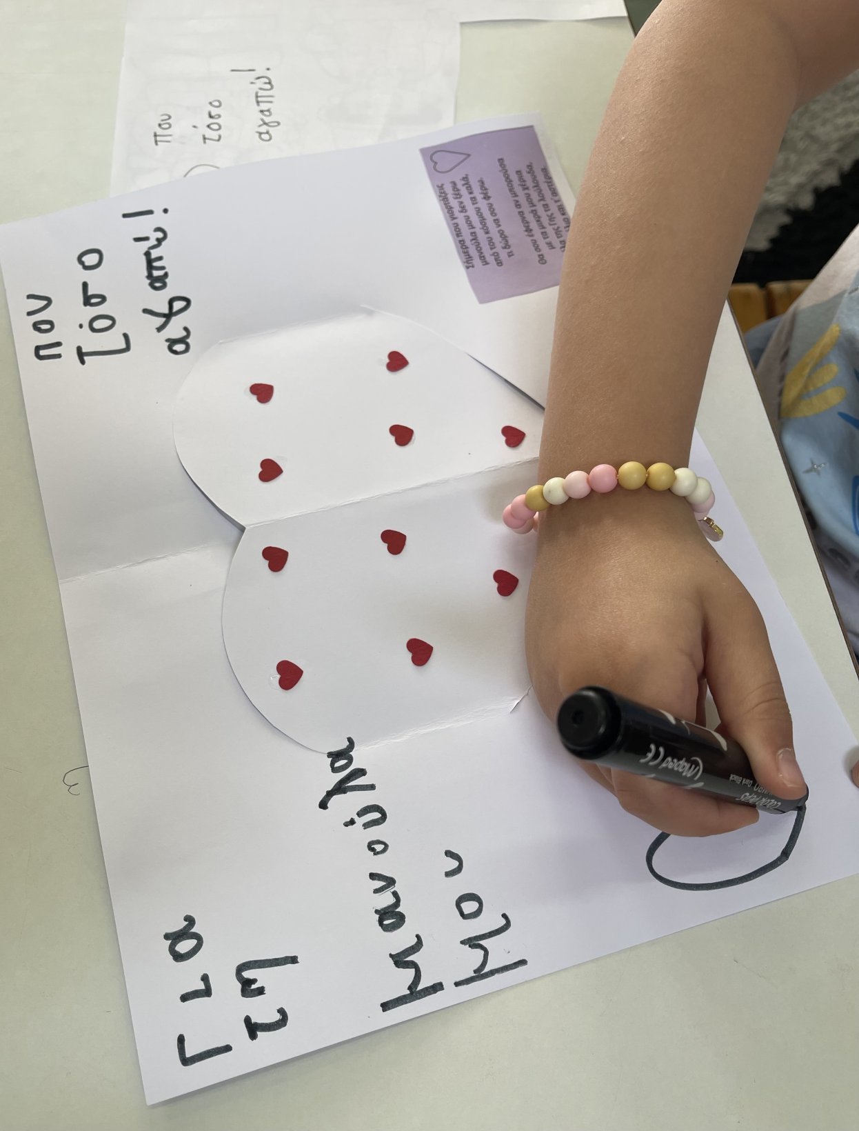 Για τη γιορτή της μητέρας ετοιμάσαμε μαζί με τους μαθητές μία κάρτα γεμάτη καρδούλες και ένα κολιέ καρδιά φτιαγμένο από πηλό.