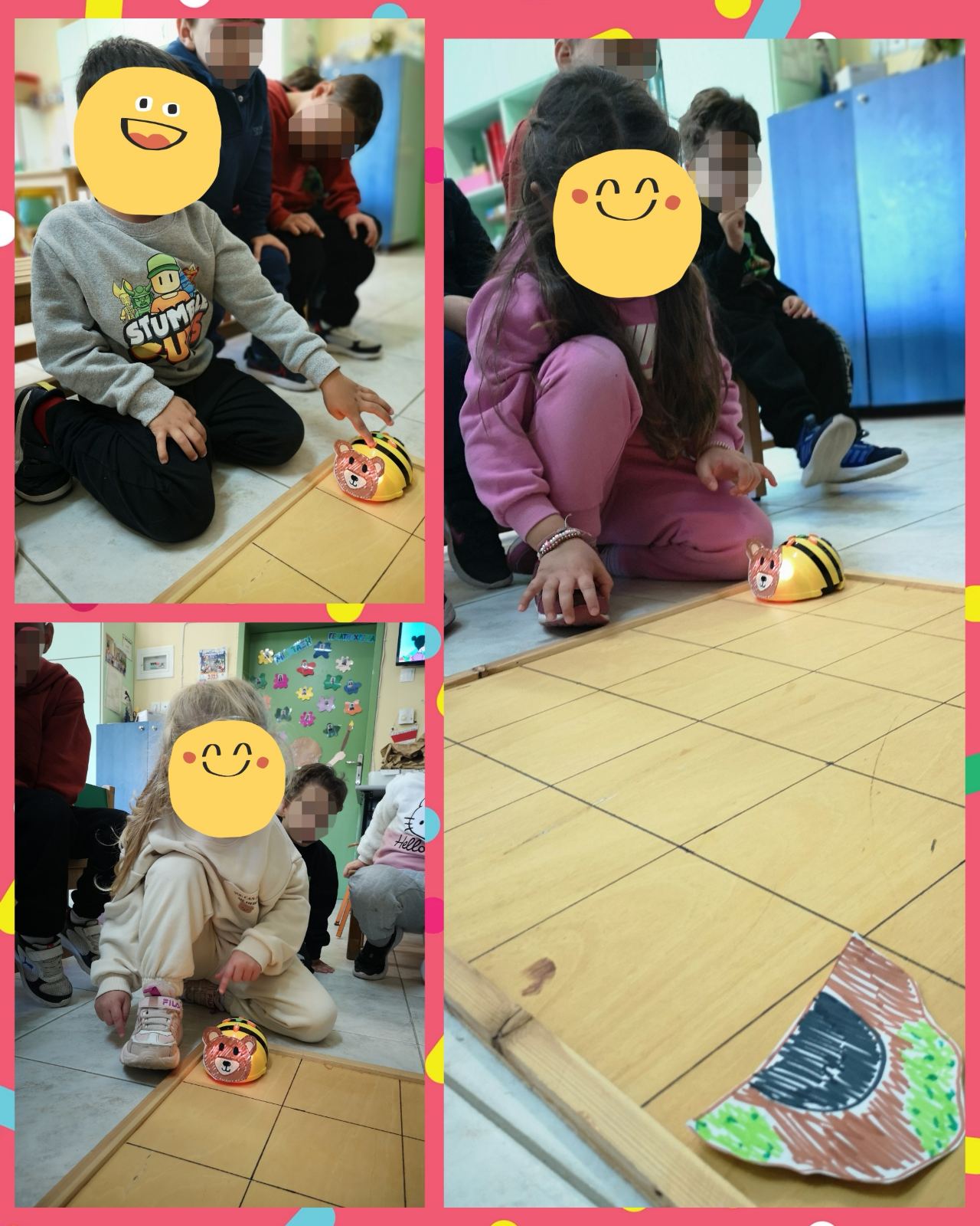 Και στην αναπαραστατική, σχεδίασαν στον πίνακα την πορεία της μέλισσας, μαθαίνοντας τη λογική της ακολουθίας και του προγραμματισμού.