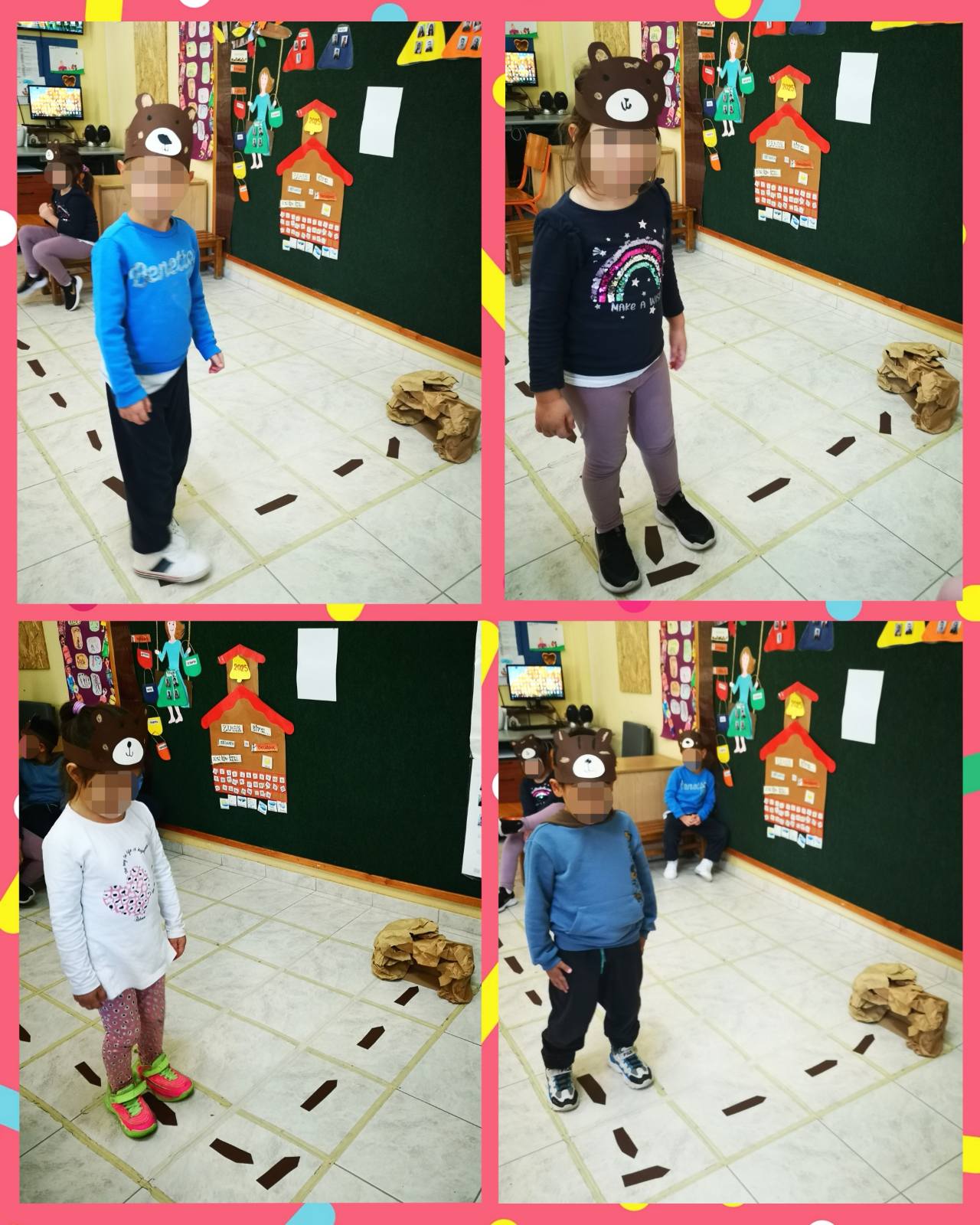 Στην ενσωματωμένη δραστηριότητα, τα παιδιά κινήθηκαν πάνω σε διαδρομή στο πάτωμα, ακολουθώντας εντολές κατεύθυνσης.