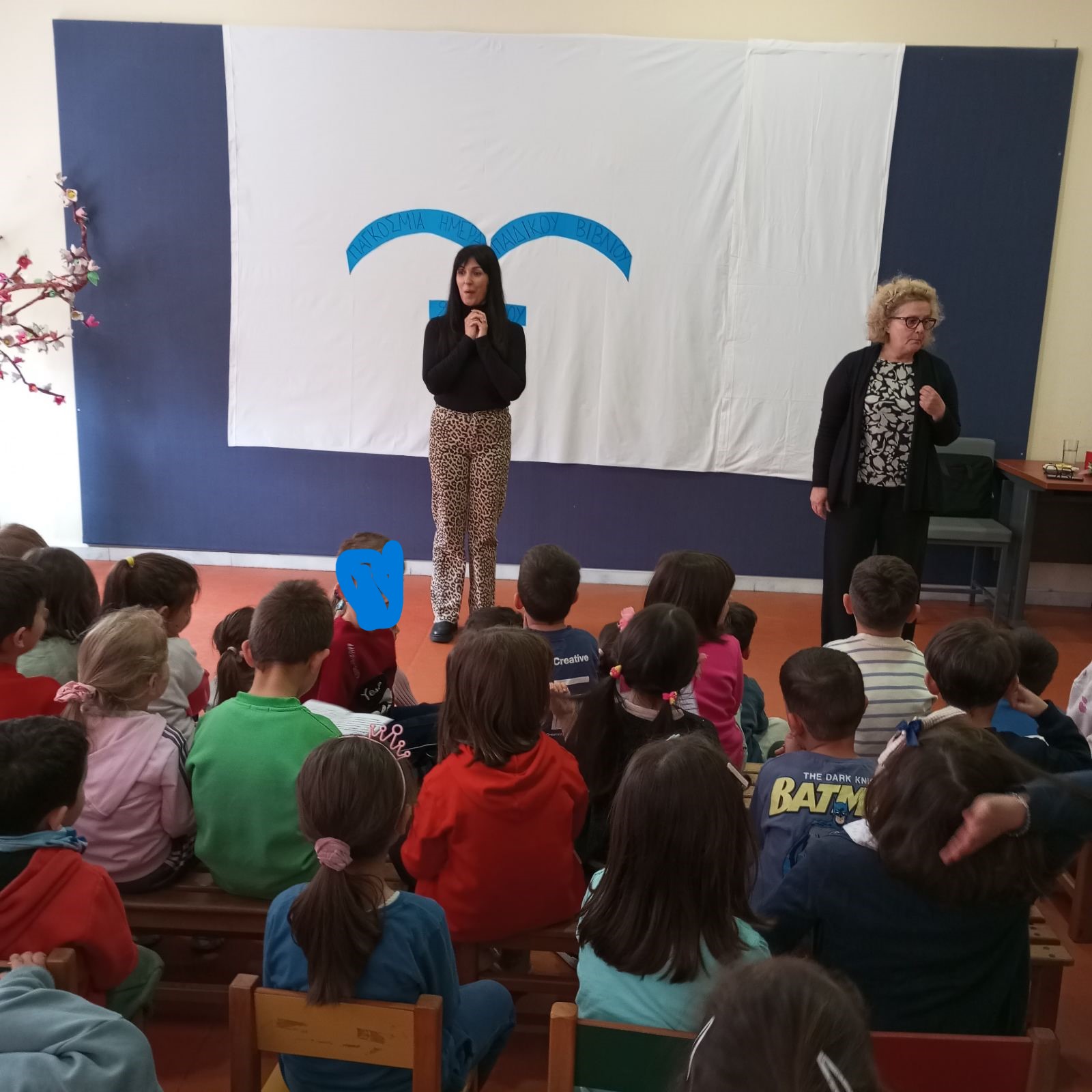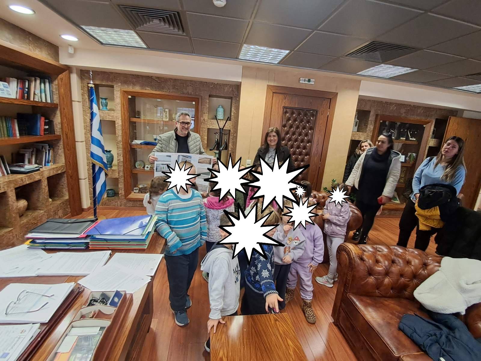 Καθώς το βιβλίο είχε την τιμητική του, στο Νηπιαγωγείο μας είχαμε σήμερα τη χαρά και την τιμή να φιλοξενούμε τη γνωστή Δραμινή συγγραφέα και στιχουργός κ. Όλγα Βλαχοπούλου. Η συγγραφέας εξήγησε στα παιδιά πως γράφει ένα βιβλίο, πως εμπνέεται και πως δημιουργεί τους χαρακτήρες και απάντησε στις ερωτήσεις τους!!