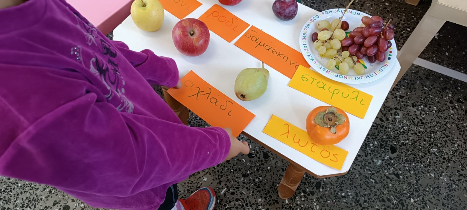 Ήρθε η ώρα να μιλήσουμε στην τάξη μας για τα φρούτα του φθινοπώρου! Τα παιδιά με τη βοήθεια της Νηπιαγωγού, ένωσαν τα φρούτα με τα ονόματά τους… Έγινε μία συζήτηση για τα φρουτάκια καθώς και το καλό που κάνουν στην υγεία μας… Είπαμε ποιο είναι το αγαπημένο φρούτο του καθένα μας! Δίπλα σε κάθε φρούτο τοποθετούσαμε τα ονόματα των παιδιών που το αγαπούσαν περισσότερο και έτσι διαπιστώσαμε ποιο φρουτάκι αρέσει σε περισσότερα παιδάκια στην τάξη μας και ποιο λιγότερο! Ο λωτός και το μήλο ήρθαν σε ισοπαλία υψηλότερης προτίμησης …