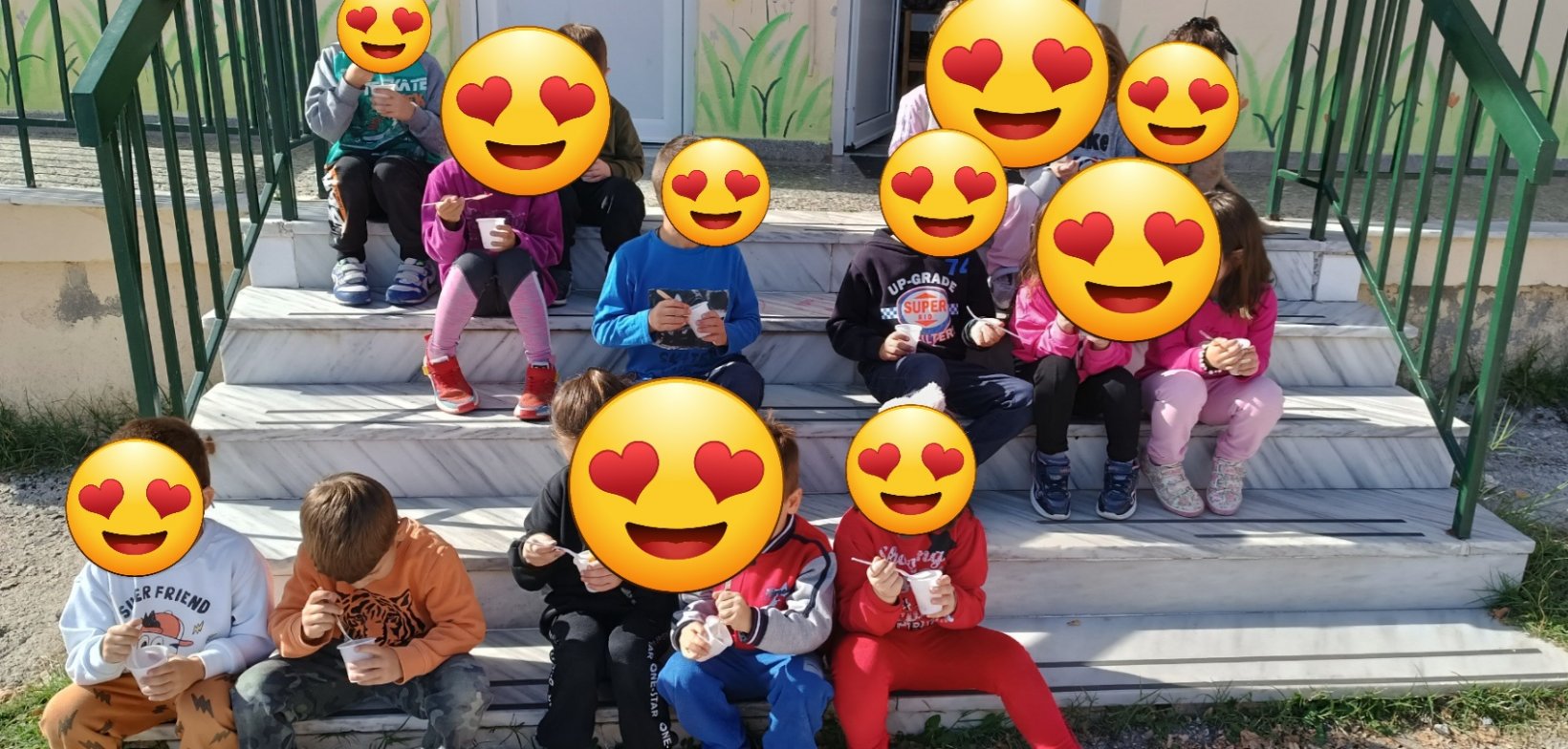 Η ημέρα έκλεισε με τους/ τις μικρούς/ -ές μαθητές/ – τριες να απολαμβάνουν την φρεσκοκομμένη φρουτοσαλάτα τους στον αύλειο χώρο του σχολείου μας!