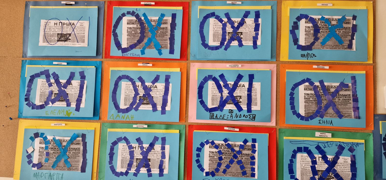 Φυσικά πραγματοποιήσαμε γιορτή με απαγγελία ποιημάτων και δοκιμαστική παρέλαση πριν την επίσημη παρέλαση ανήμερα της επετείου στο ηρώο.