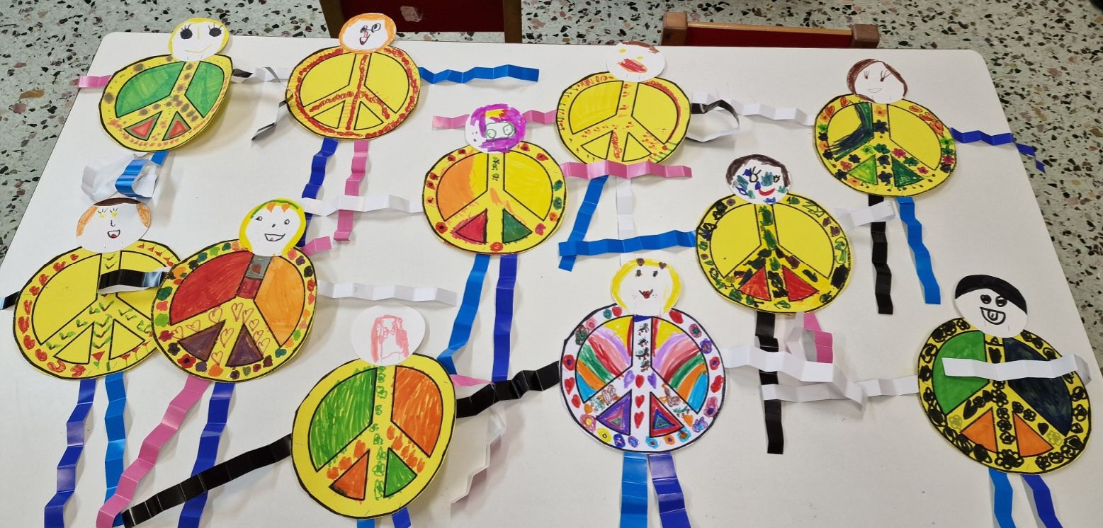 Με αφορμή την 28η Οκτωβρίου, η συζήτηση για την ειρήνη μας ενέπνευσε να δημιουργήσουμε τους “Ειρηνούληδες”… Σαν σώμα τους έχουν το σήμα της παγκόσμιας ειρήνης. Επιπλέον, είναι χαρούμενοι γιατί η έννοια ειρήνη περιλαμβάνει: την ευτυχία, τη χαρά, την αγάπη, τη ξενοιασιά, την ασφάλεια, τη γαλήνη, την πρόοδο… Και τόσα άλλα!
