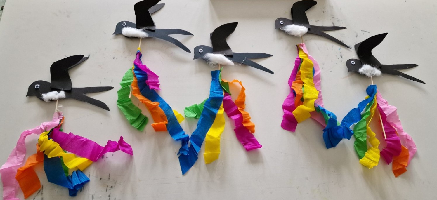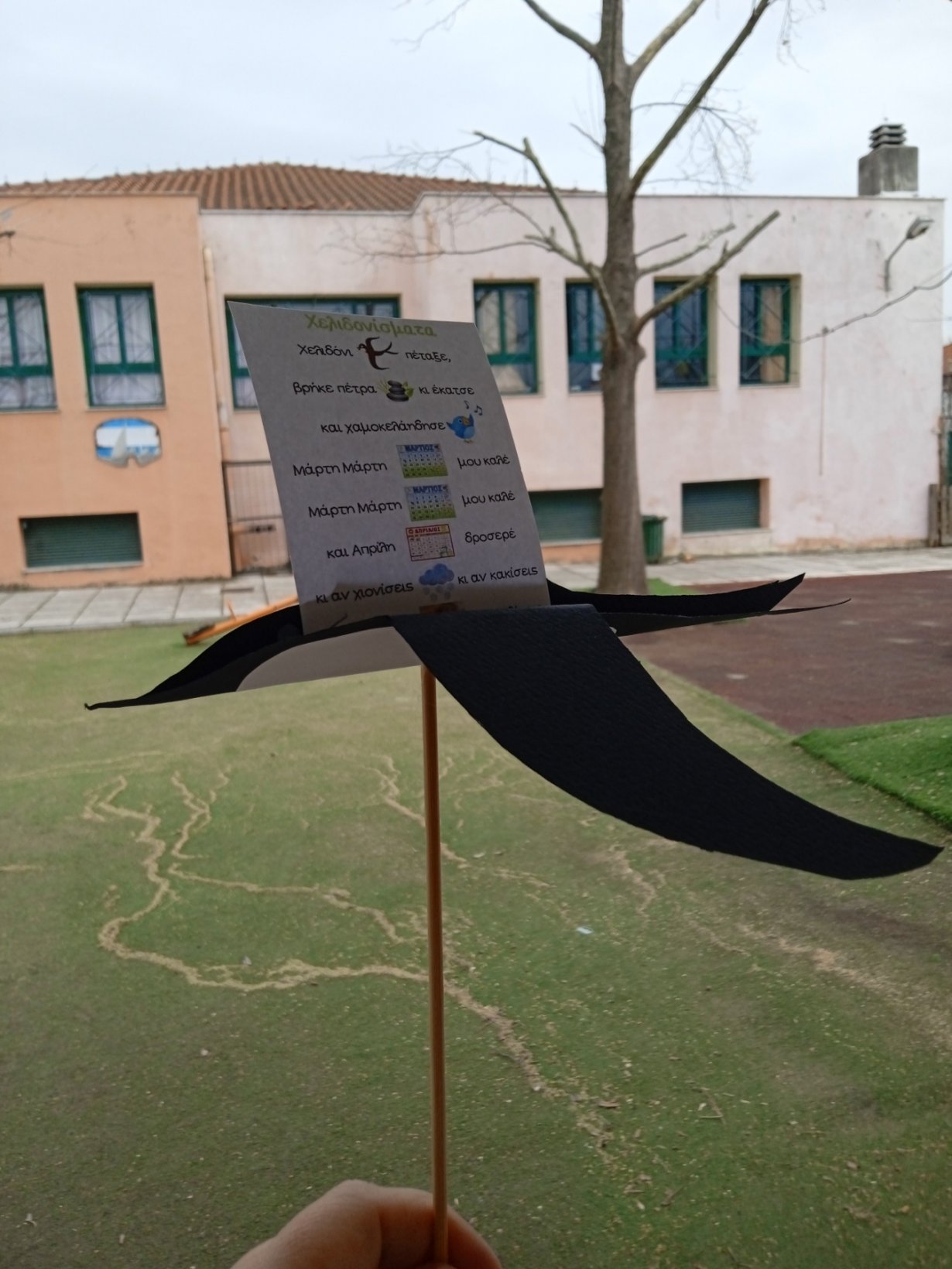 Έτσι, λοιπόν, κι εμείς φτιάξαμε τις χελιδόνες μας και μάθαμε και τα τοπικά κάλαντα τα οποία τα τραγουδήσαμε εντός της τάξης μας! Τέλος, διακοσμήσαμε και το ξύλινο δεντράκι μας με χελιδόνες και πλέον κινούμαστε σε ρυθμούς Άνοιξης!