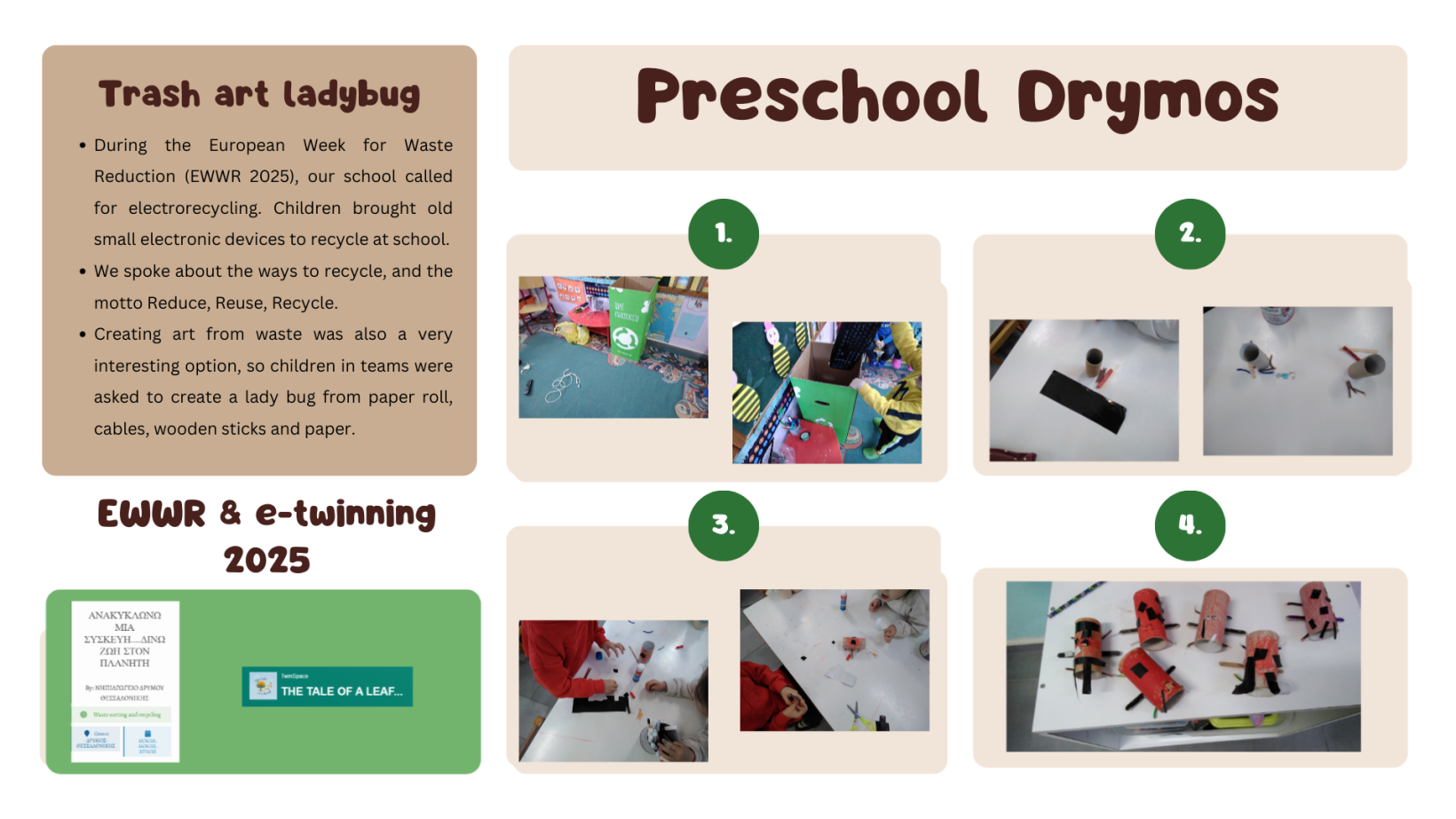 Το νηπιαγωγείο μας συμμετέχει στην Ευρωπαϊκή Εβδομάδα Μείωσης Αποβλήτων (EWWR 2025) μετά από κάλεσμα του ΕΟΑΝ για τη μείωση των αποβλήτων ηλεκτρικού και ηλεκτρονικού εξοπλισμού.
