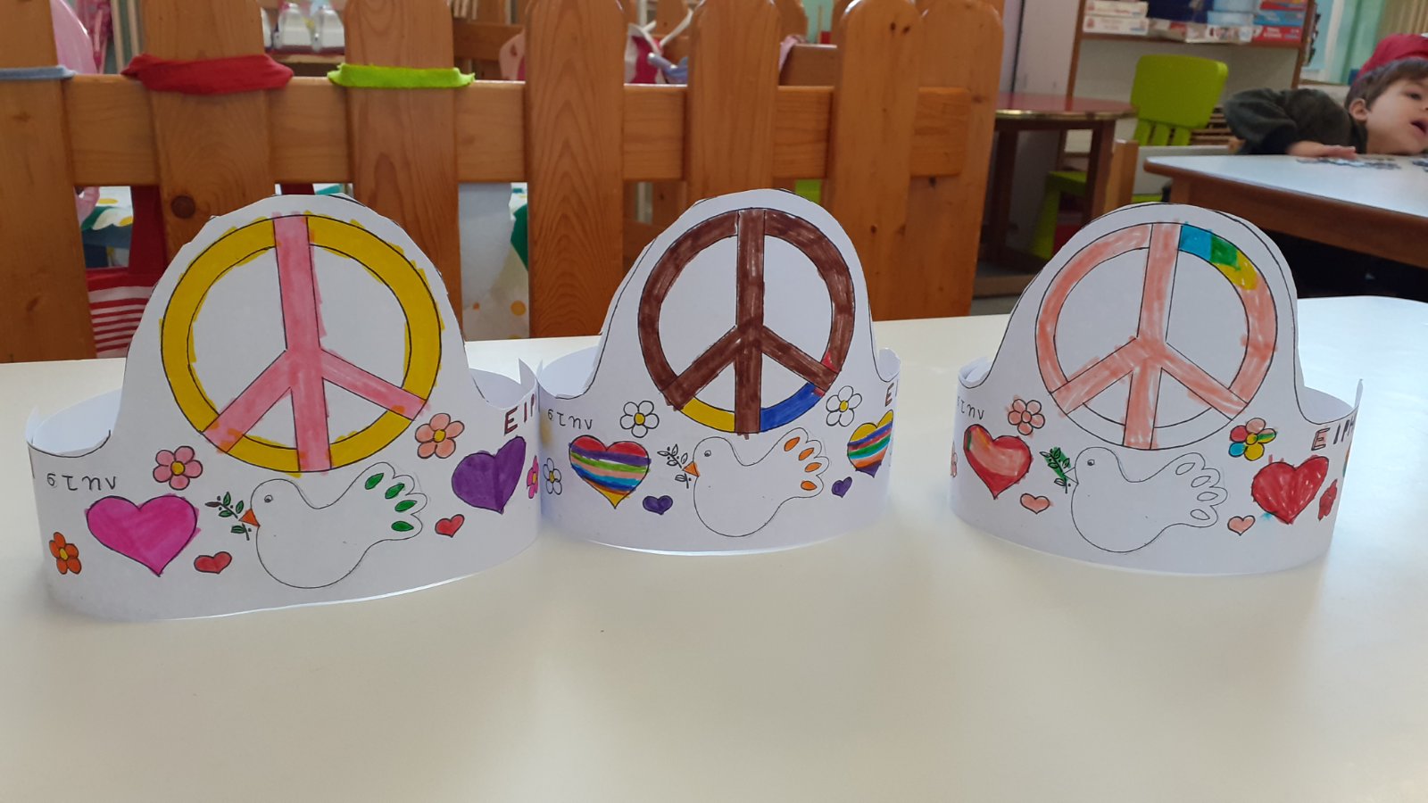 Με αφορμή το βιβλίο τα παιδιά κατασκεύασαν ένα περιστέρι που κρατάει ένα φύλλο ελιάς στο στόμα (κατά το κλάδο ελαίας) που συμβολίζει την ειρήνη.