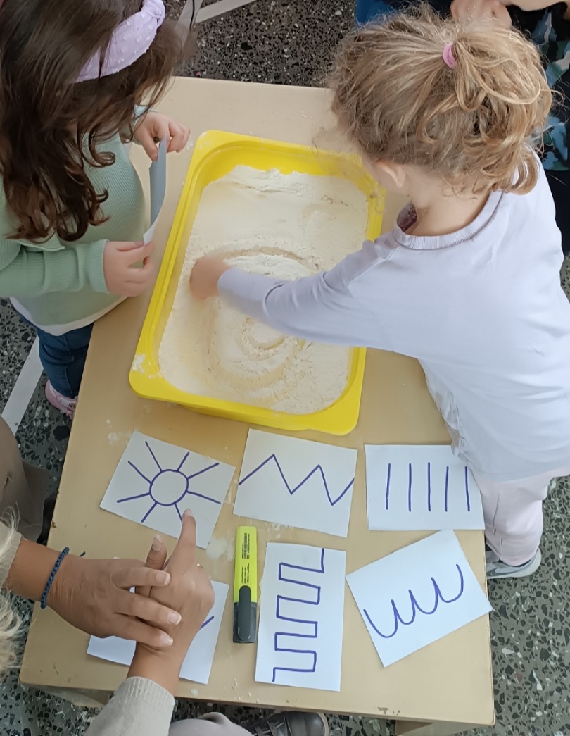 Με πλαστελίνες και φασόλια σχεδίασαν ευθείες και τεθλασμένες γραμμές.