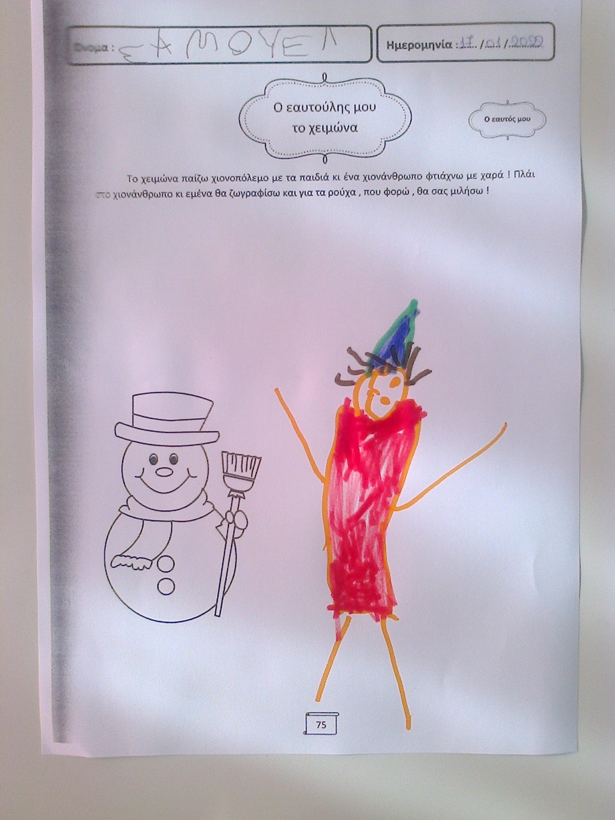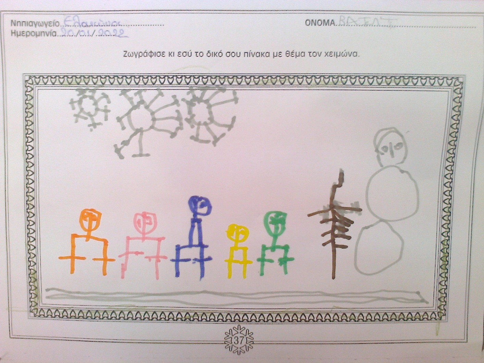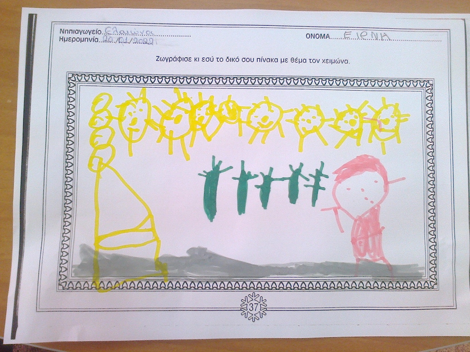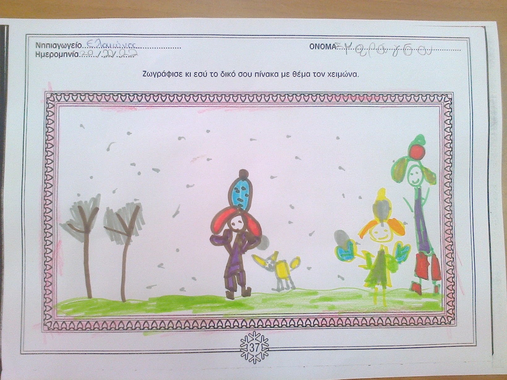 -Γράψαμε μια καρτούλα στον χειμώνα και του ζητήσαμε να μας φέρει το χιόνι, την παγωνιά κ.ά. και την αφήσαμε στο παράθυρο για να την πάρει.