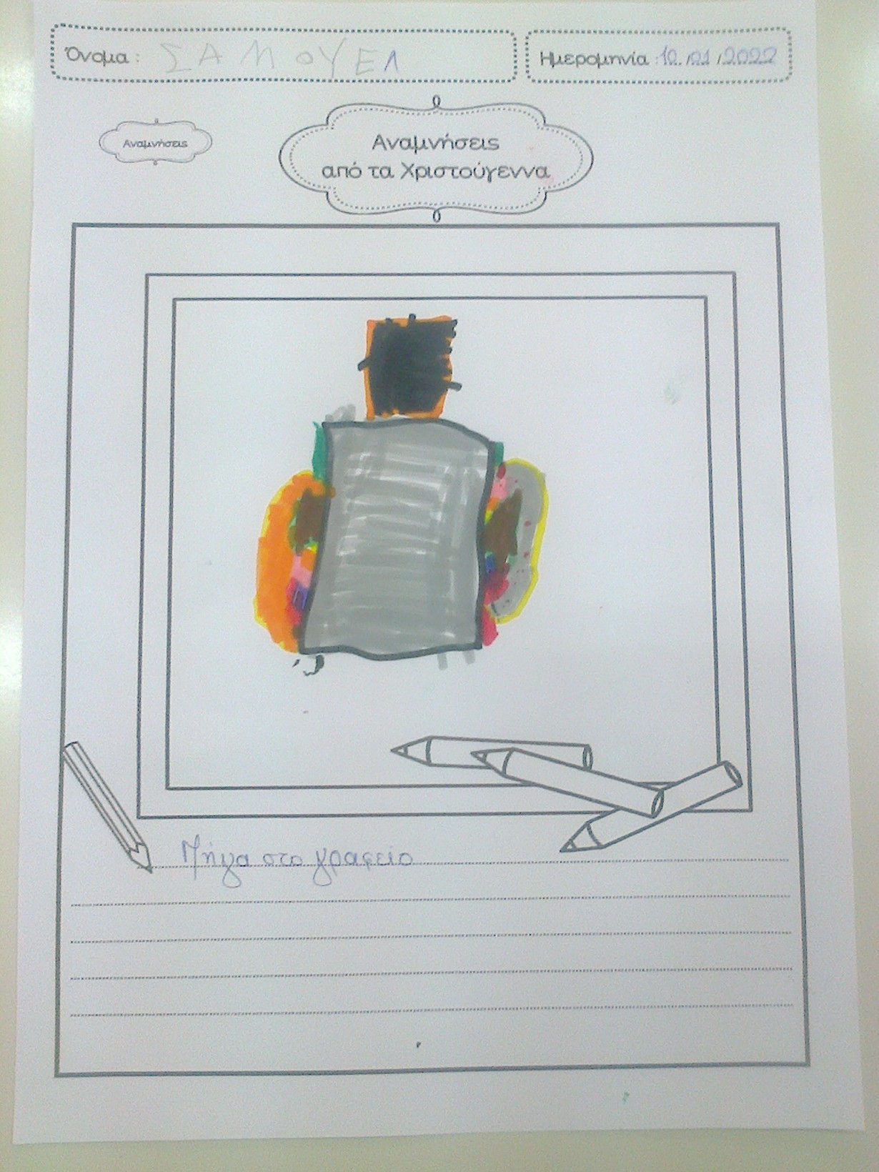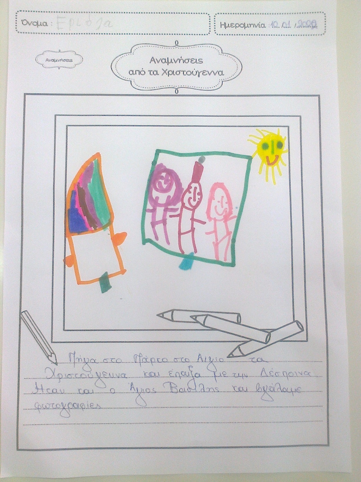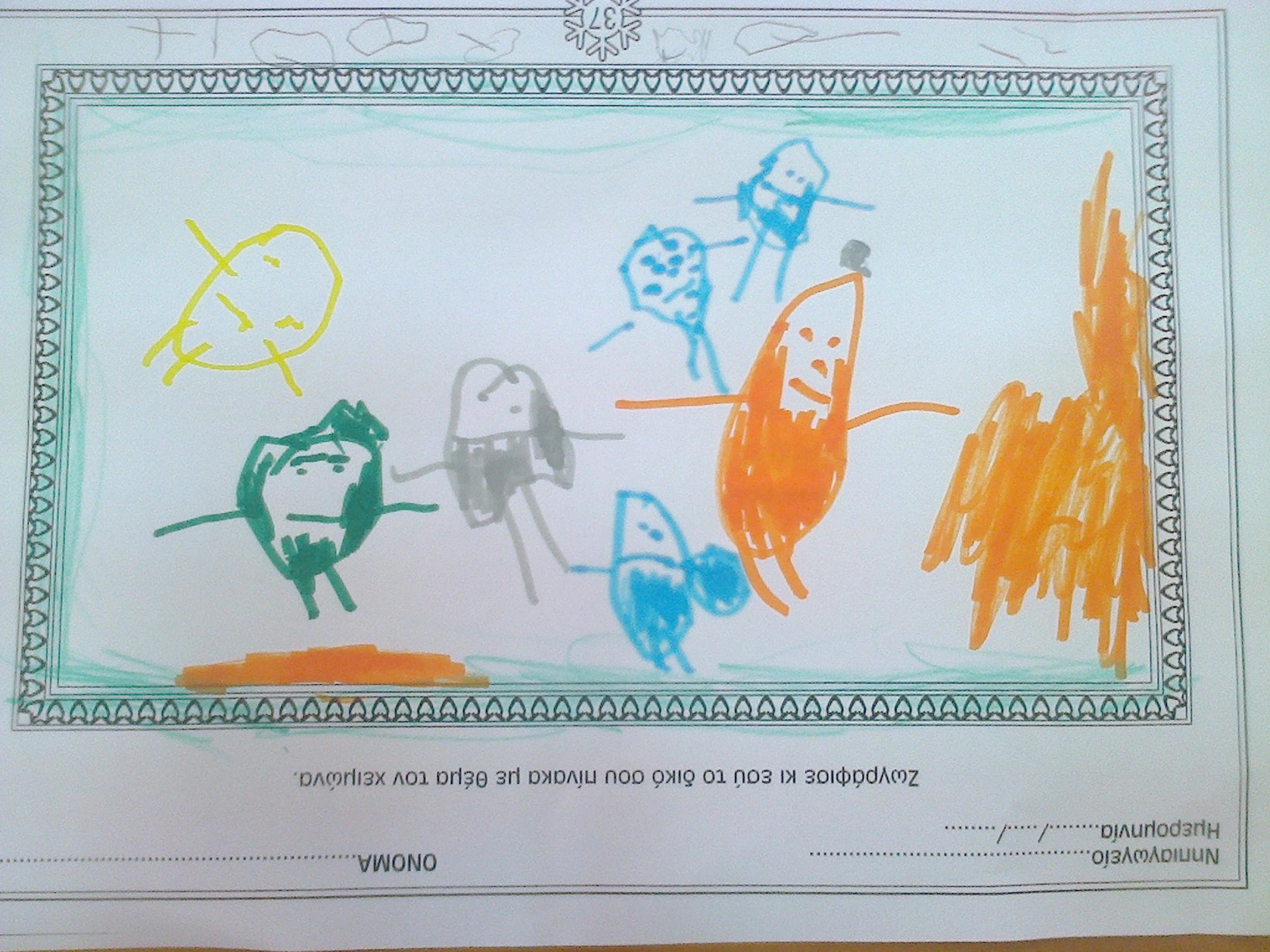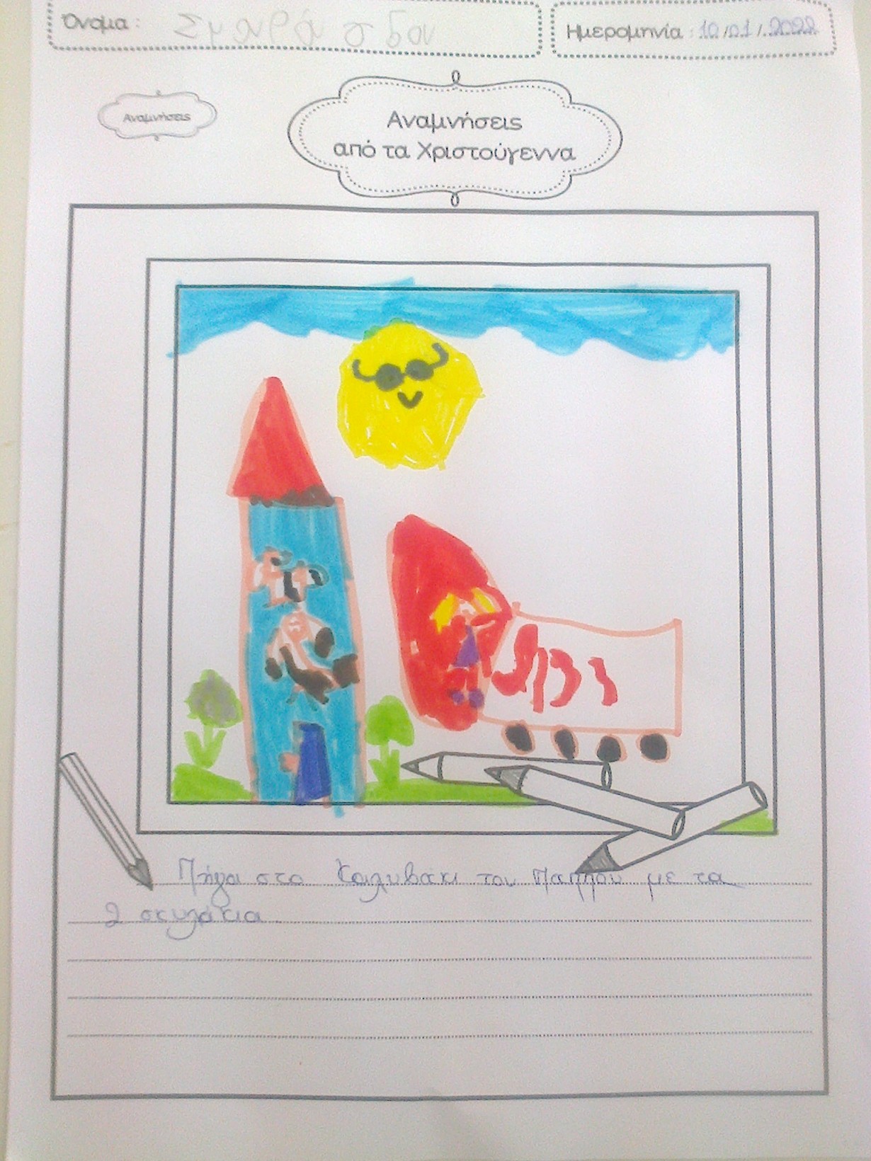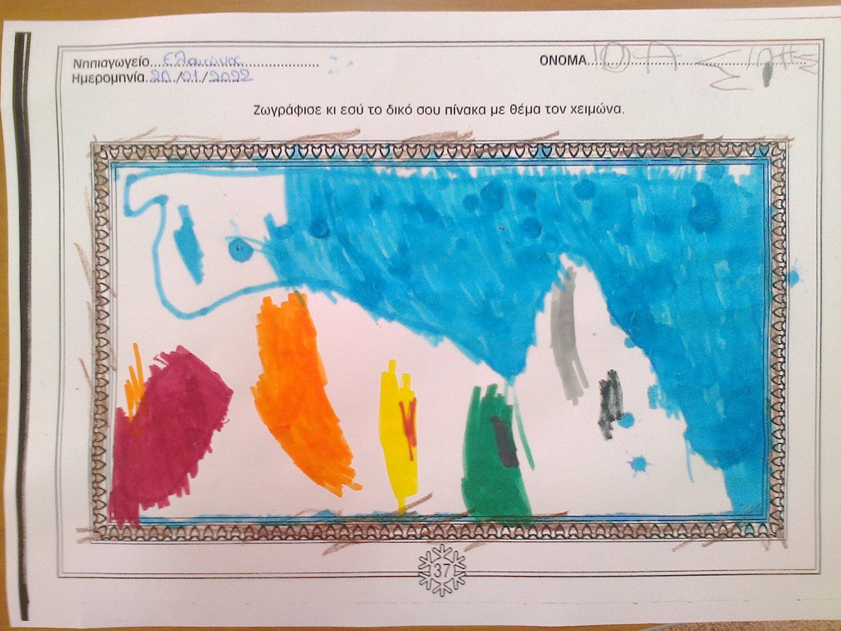 -Γράψαμε μια καρτούλα στον χειμώνα και του ζητήσαμε να μας φέρει το χιόνι, την παγωνιά κ.ά. και την αφήσαμε στο παράθυρο για να την πάρει.