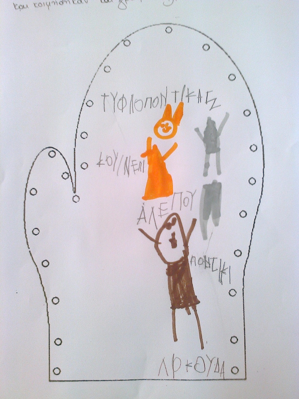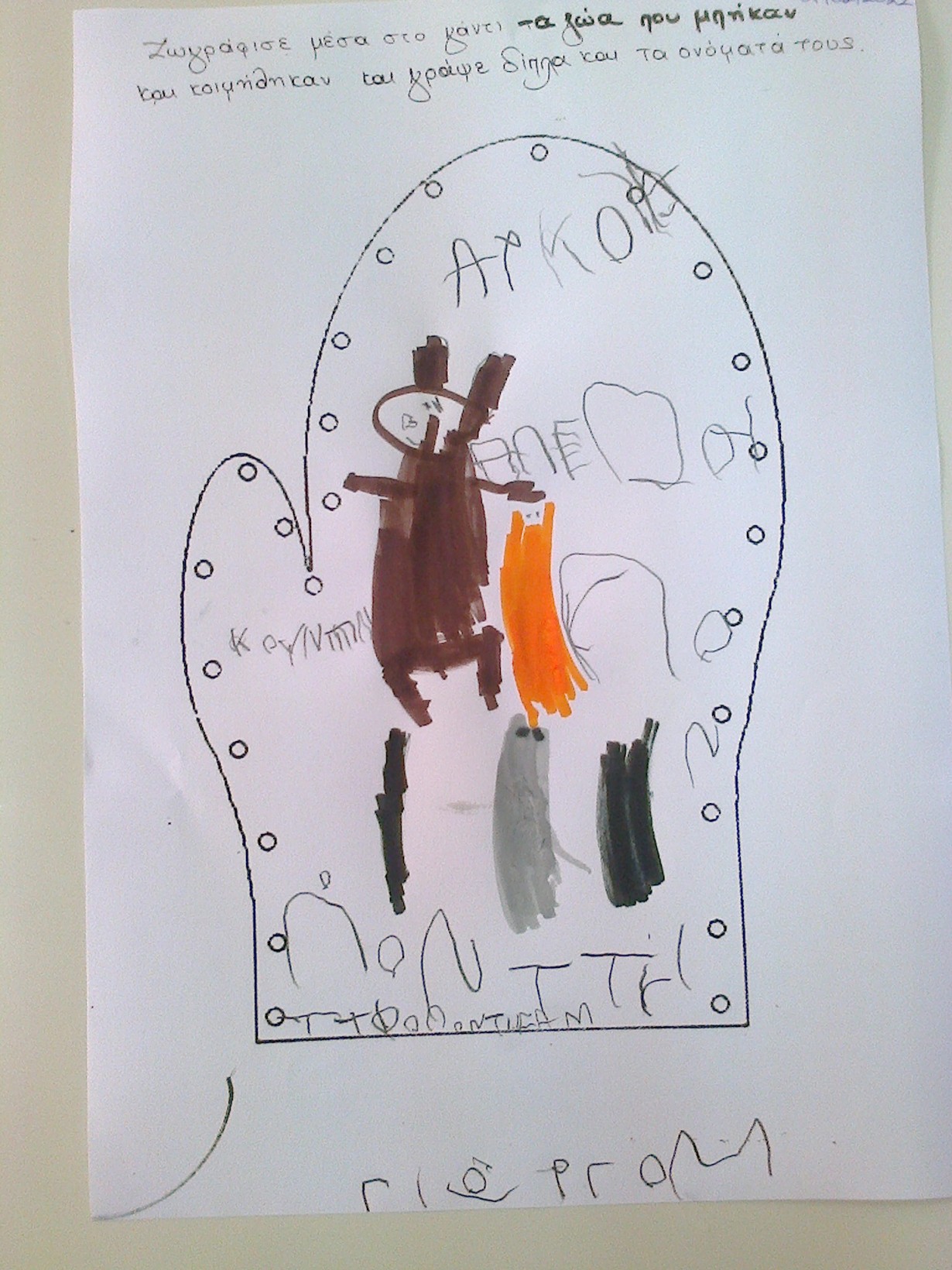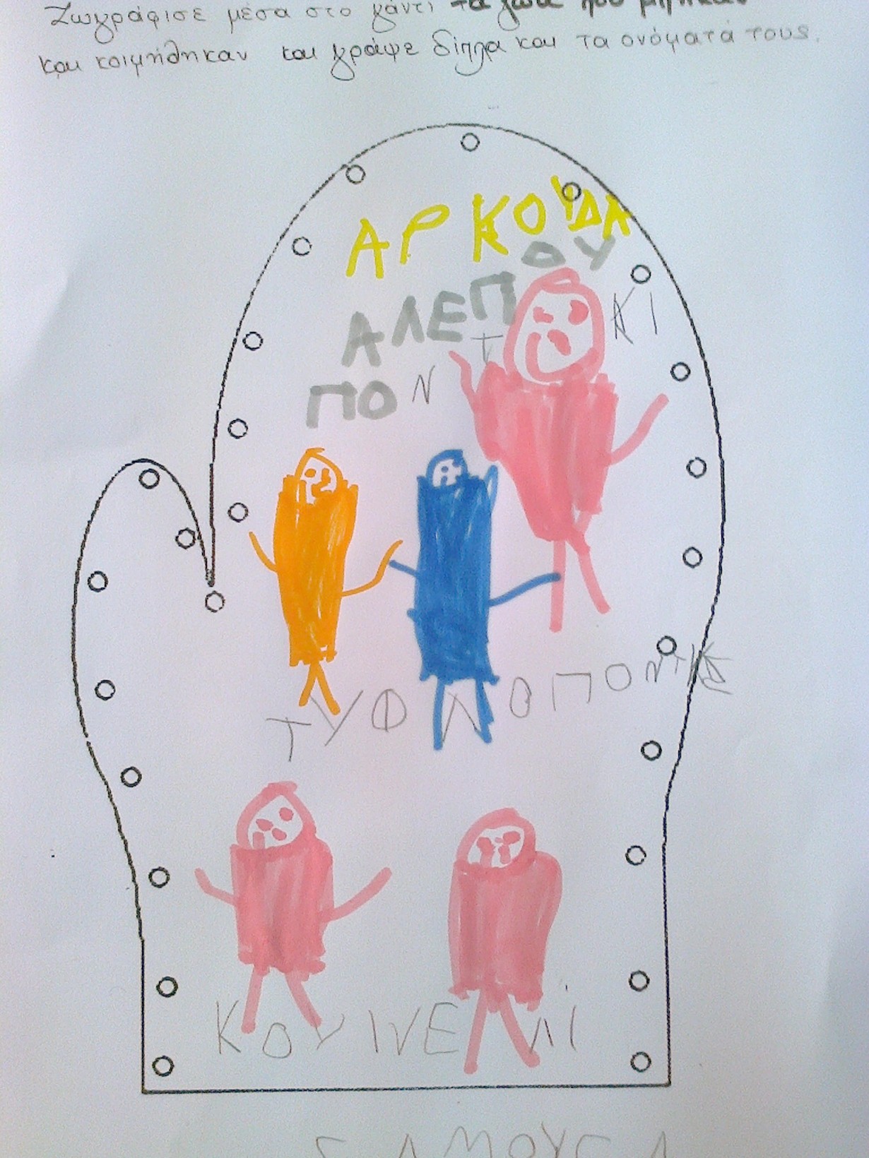 -Διαβάσαμε το ουκρανικό παραμύθι ” Το μαγικό γάντι”, τα παιδιά ζωγράφισαν τα ζωάκια που μπήκαν σε αυτό και μετά έγραψαν και τα ονόματα των ζώων.