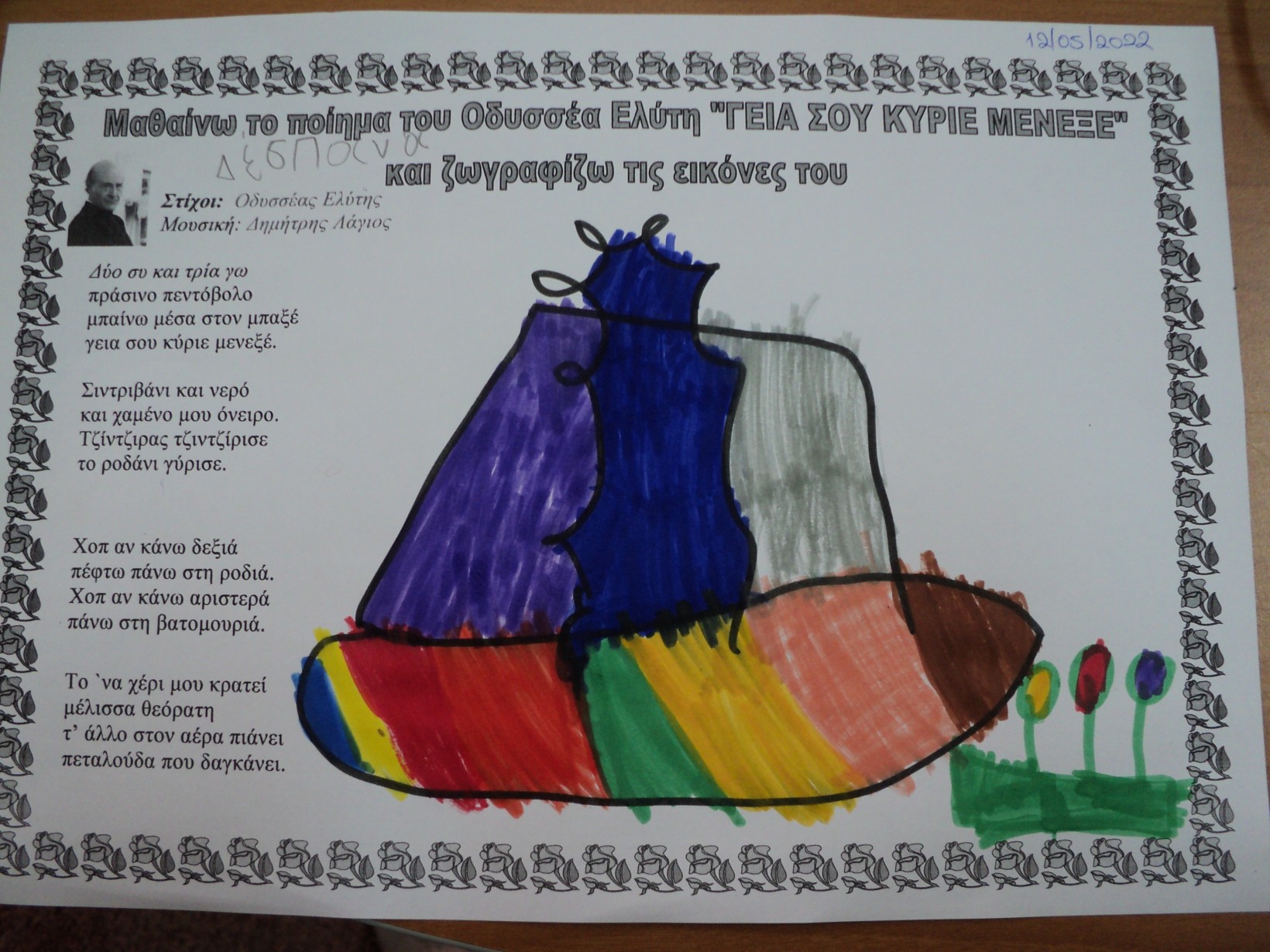 Μάθαμε το ποίημα του Οδυσσέα Ελύτη ” Γεια σου κύριε Μενεξέ” και ζωγραφίσαμε τις εικόνες του.