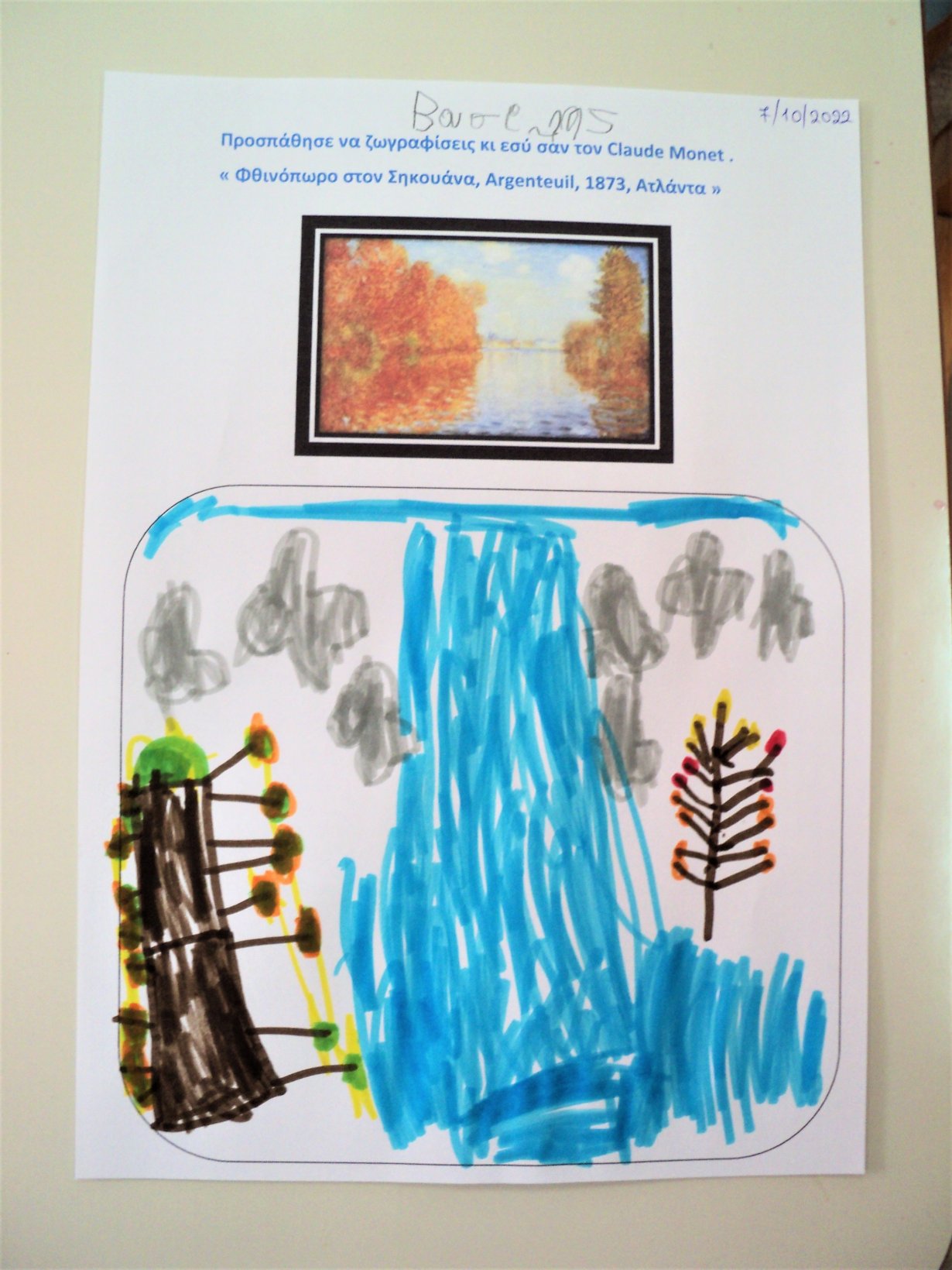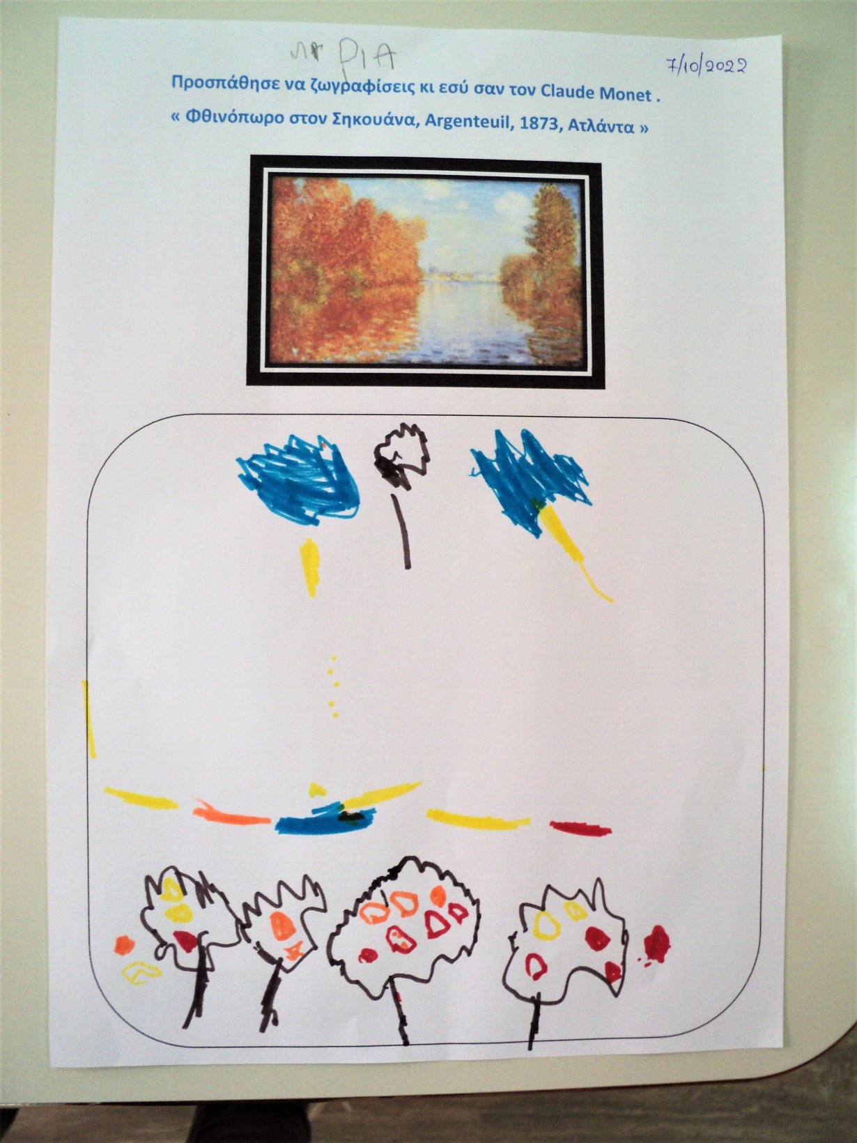 - Ζωγραφίσαμε ένα πίνακα για το Φθινόπωρο εμπνευσμένοι από τον Claude Monet.