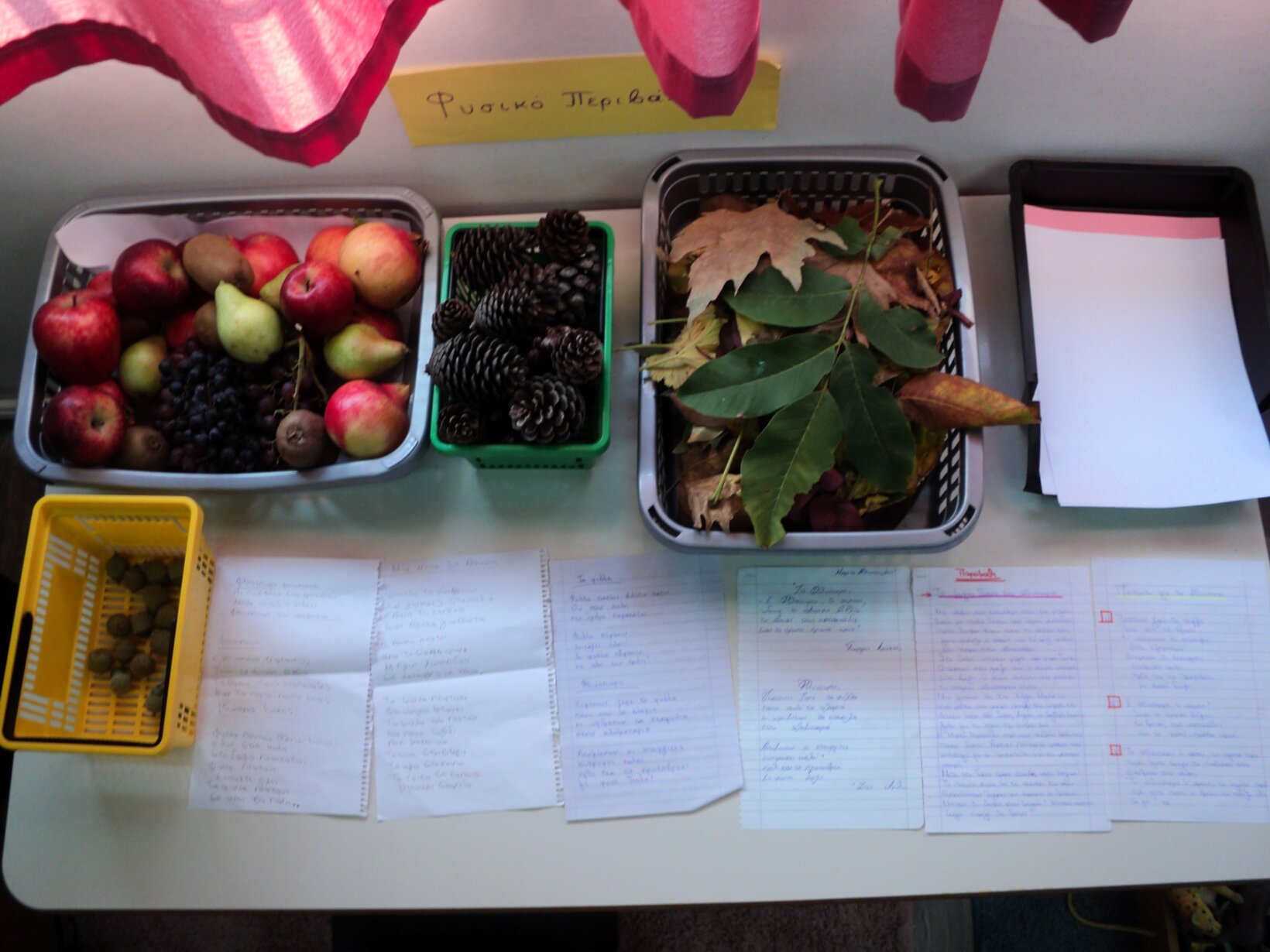 - Μάθαμε τραγούδια για το Φθινόπωρο: ” Ήρθε το Φθινόπωρο”, ” Τα αχλάδια”, ” Έχω ένα αμπέλι στο γυαλό”.