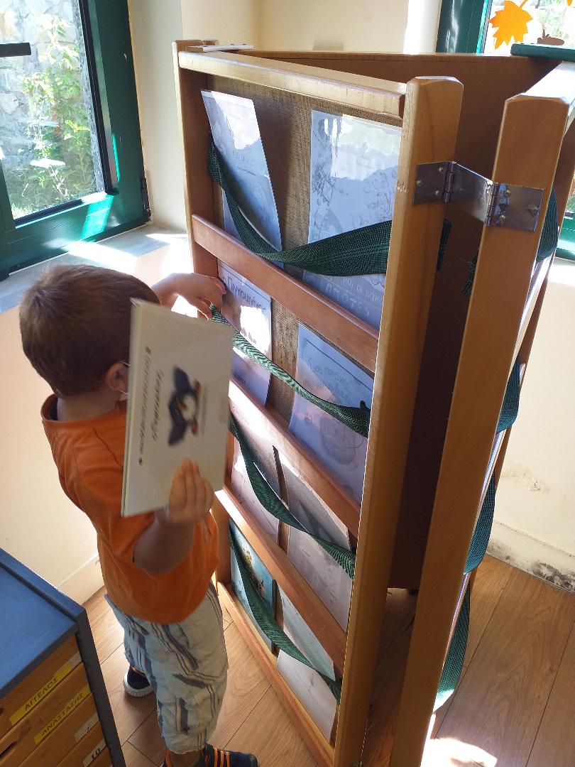 Στήσιμο βιβλιοθήκης Σήμερα φωτοτυπήσαμε και πλαστικοποιήσαμε τα εξώφυλλα των παραμυθιών της βιβλιοθήκης μας. Τα παιδιά συνεργάστηκαν και βοήθησαν ο ένας τον άλλον στην αντιστοίχιση εξώφυλλου-παραμυθιού. Βρες το παραμύθι… Πού είναι η θέση μου; Οι κανόνες της βιβλιοθήκης Ώρα για διάβασμα…