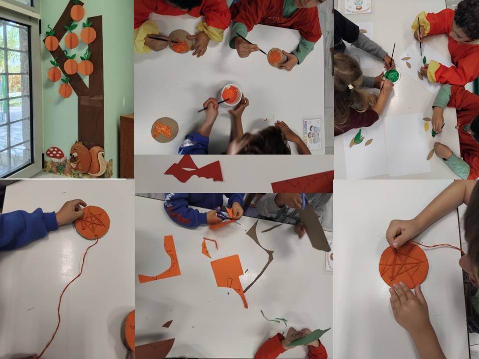 Φτιάξαμε σημαιάκια και περιστεράκια με τις παλάμες μας και στολίσαμε το φόρεμα της Ειρήνης, τραγουδήσαμε το τραγούδι της, δραματοποιήσαμε την Ειρήνη του Αριστοφάνη και το υπέροχο αντιπολεμικό παραμύθι “Πατάτες, Πατάτες”
