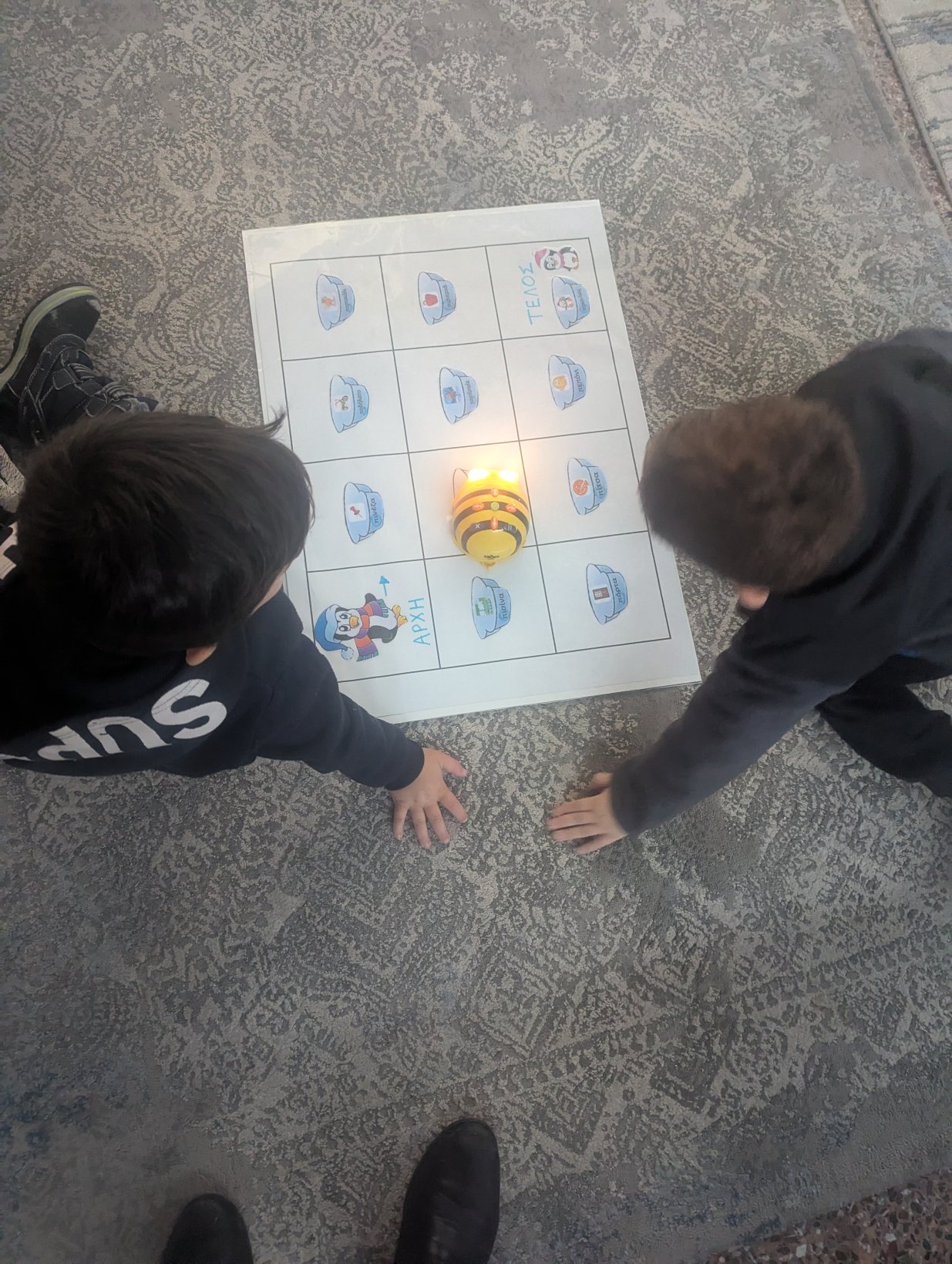 Ακολουθήσαμε τη διαδρομή που πραγματοποιήθηκε στον επιδαπέδιο παιχνίδι διάσωσης “Πατώντας στα ΠΙ” με την αγαπημένη μας bee-bot…