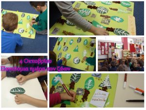 Το δάσος και τα ζώα που ζουν σε αυτό ήταν το θέμα συζήτησης. Είδαμε πολλά ζωάκια στο διαδίκτυο, ανάμεσα τους και το λύκο και την αρκούδα που είναι υπό εξαφάνιση. Έπειτα φτιάξαμε αφίσα-δάσος για την παγκόσμια ημέρα των ζώων και βάλαμε σε αυτή όλα τα ζωάκια που ζουν στο κοντινό μας δάσος. Μας βοήθησαν και οι γονείς μας καθώς φωτογράφησαν αρκετά από αυτά και μας έστειλαν τις φωτογραφίες.