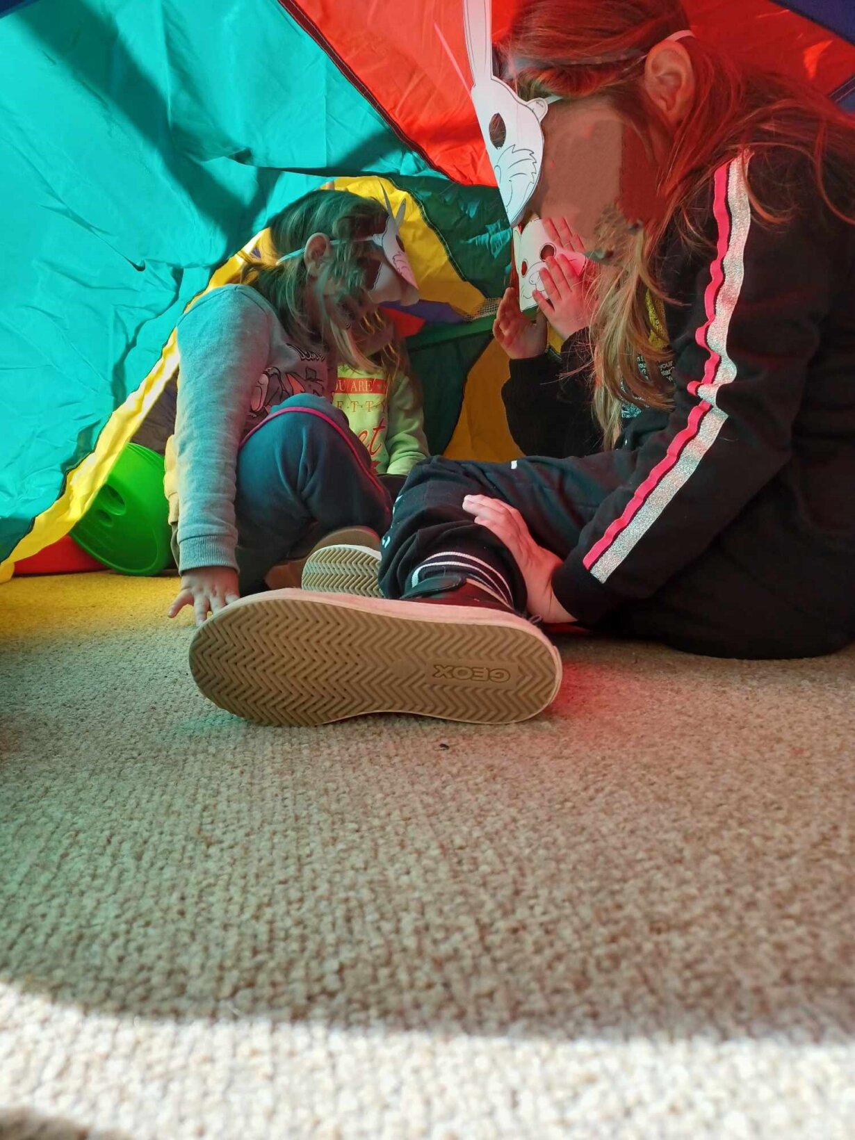 Αφού διαβάσαμε την ιστορία, όπου επτά ζώα του δάσους στριμώχνονται σε ένα γάντι προκειμένου ζεσταθούν, τα παιδιά διάλεξαν το ζώο που θα ήθελαν να υποδυθούν, φόρεσαν τη μάσκα τους και δραματοποίησαν το παραμύθι. Φτιάξαμε το δικό μας γάντι, περάσαμε τα βραχάκια του ποταμού και δεν αφήσαμε κανένα παιδάκι-ζωάκι έξω από το γάντι- παρέα!