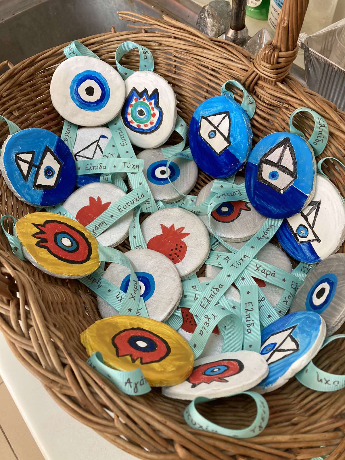 Παράλληλα, με την βοήθεια των μαθητών της Δ’ Δημοτικού, οι οποίοι μας επισκέφθηκαν με την δασκάλα τους κ. Ειρήνη Τηνιακού, έγραψαν ατομικά γράμματα στον άγιο Βασίλη και κατόπιν τα ταχυδρόμησαν. Εμείς ως ελάχιστο δείγμα ευγνωμοσύνης τους προσφέραμε χριστουγεννιάτικα γούρια που είχαμε κατασκευάσει τις προηγούμενες ημέρες.