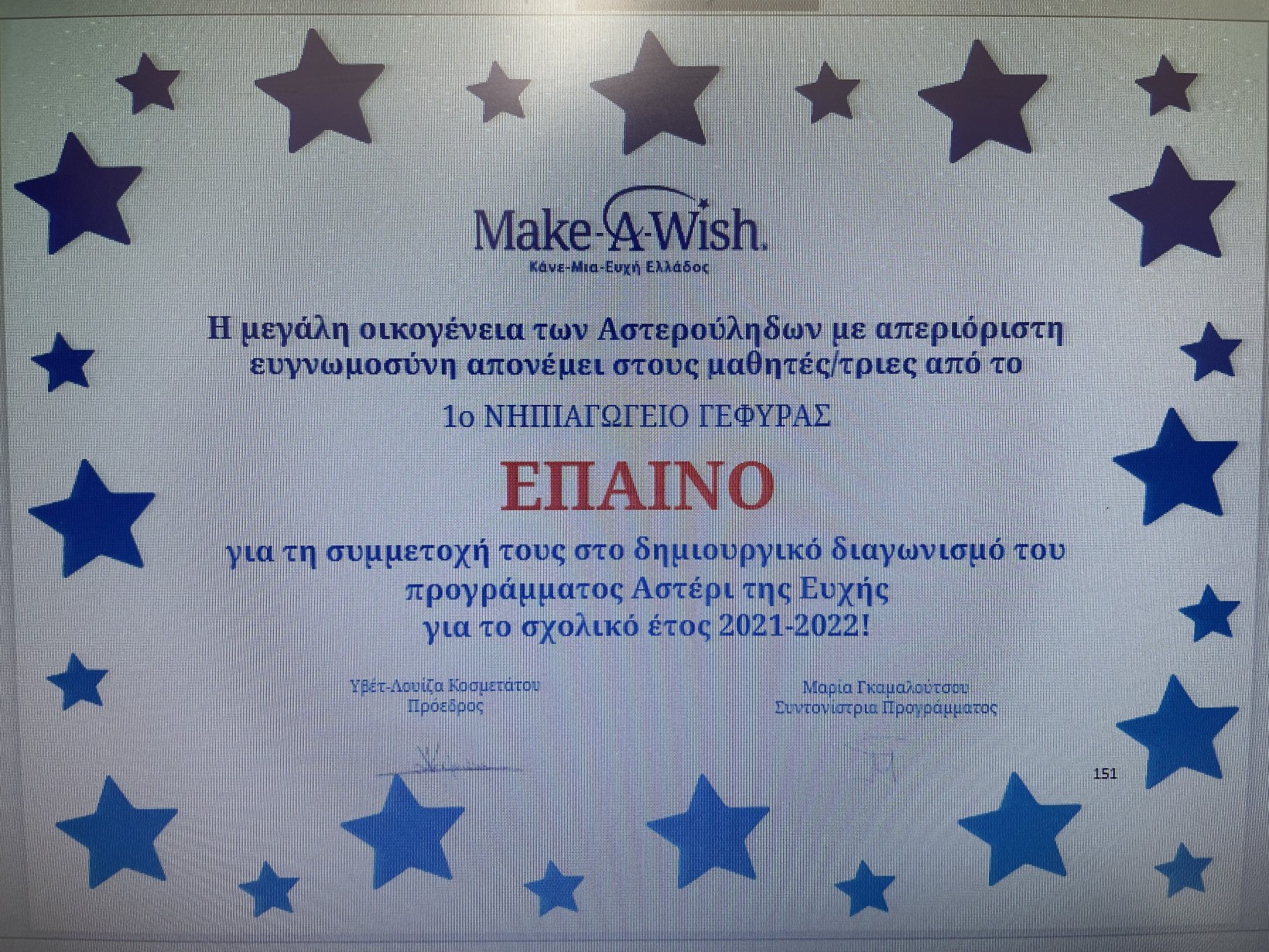O EΠΑΙΝΟΣ ΤΟΥ ΝΗΠΙΑΓΩΓΕΙΟΥ ΜΑΣ για την συμμετοχή μας στο make a wish ΕΛΛΑΔΟΣ