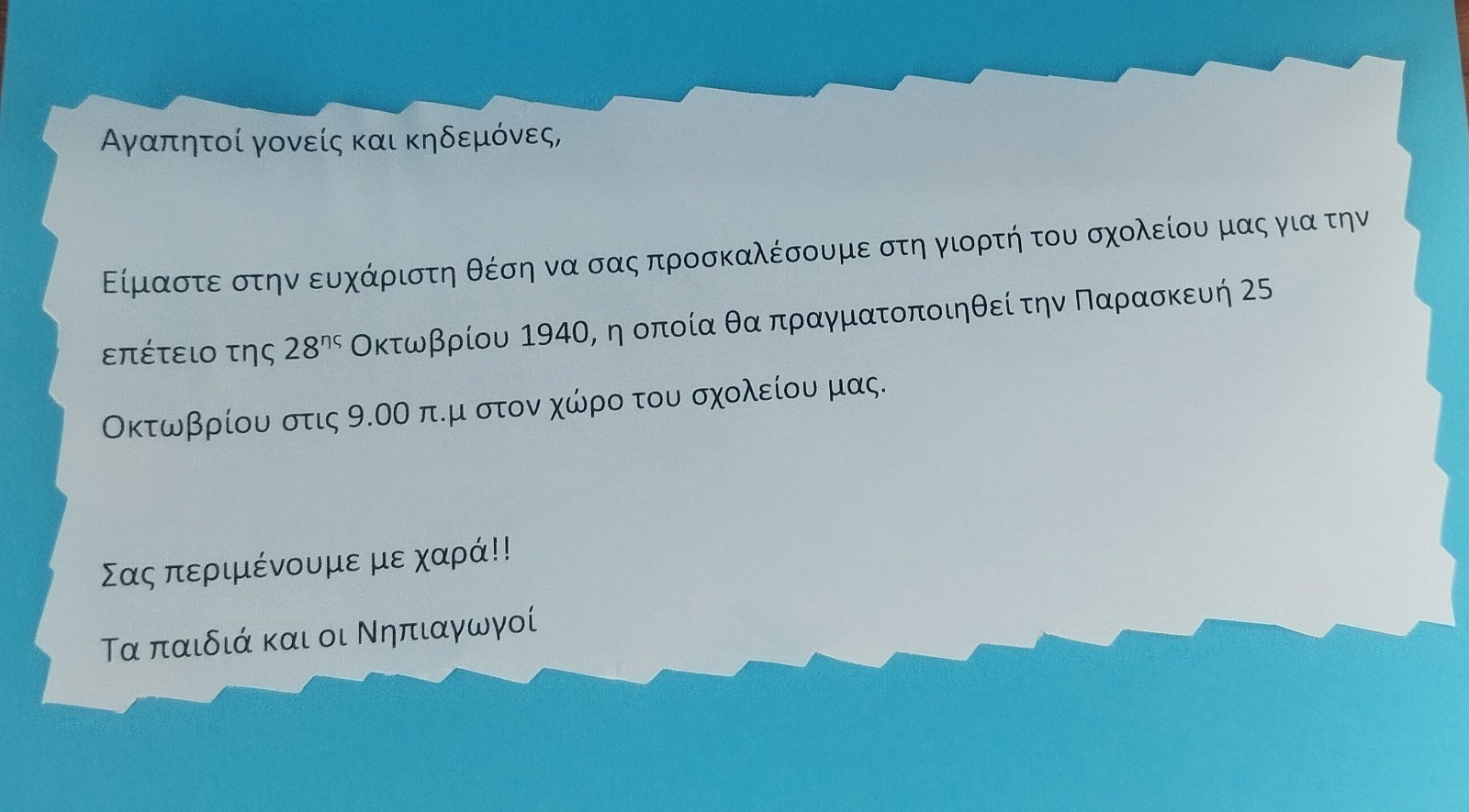 Πρόσκληση γιορτής για την Επέτειο της 28ης Οκτωβρίου 1940