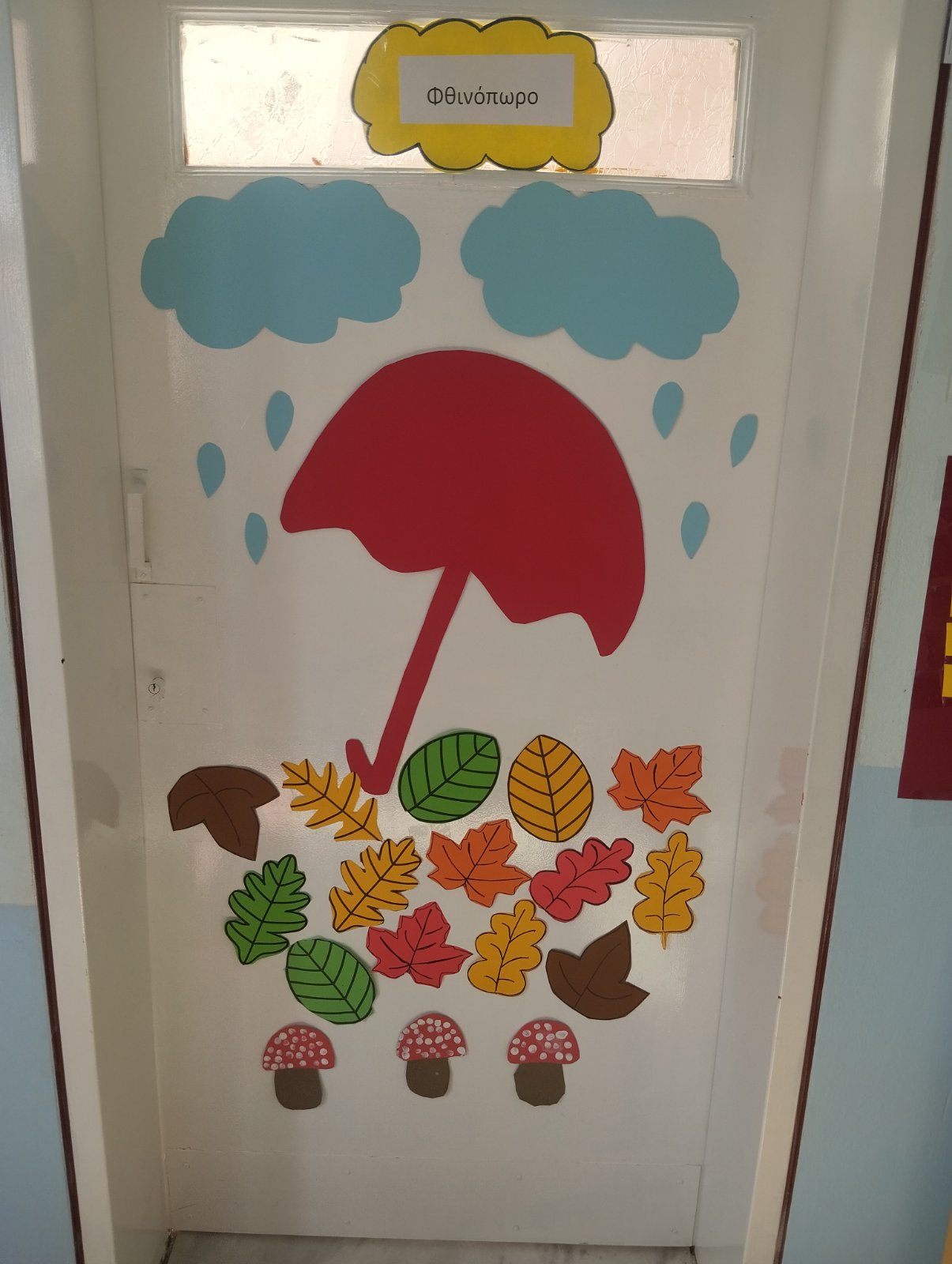 Μιλώντας για την εποχή που έχουμε τώρα ξεκινήσαμε την επεξεργασία της θεματικής του Φθινοπώρου. Μιλήσαμε για τα χαρακτηριστικά του καιρού, την αλλαγή της θερμοκρασίας, το πέσιμο των φύλλων, το άνοιγμα των σχολείων, τα πρωτοβρόχια, τα φρούτα του Φθινοπώρου και τον τρύγο. Μάθαμε το γράμμα Φ του Φθινοπώρου και κάναμε φωνολογικές ασκήσεις.