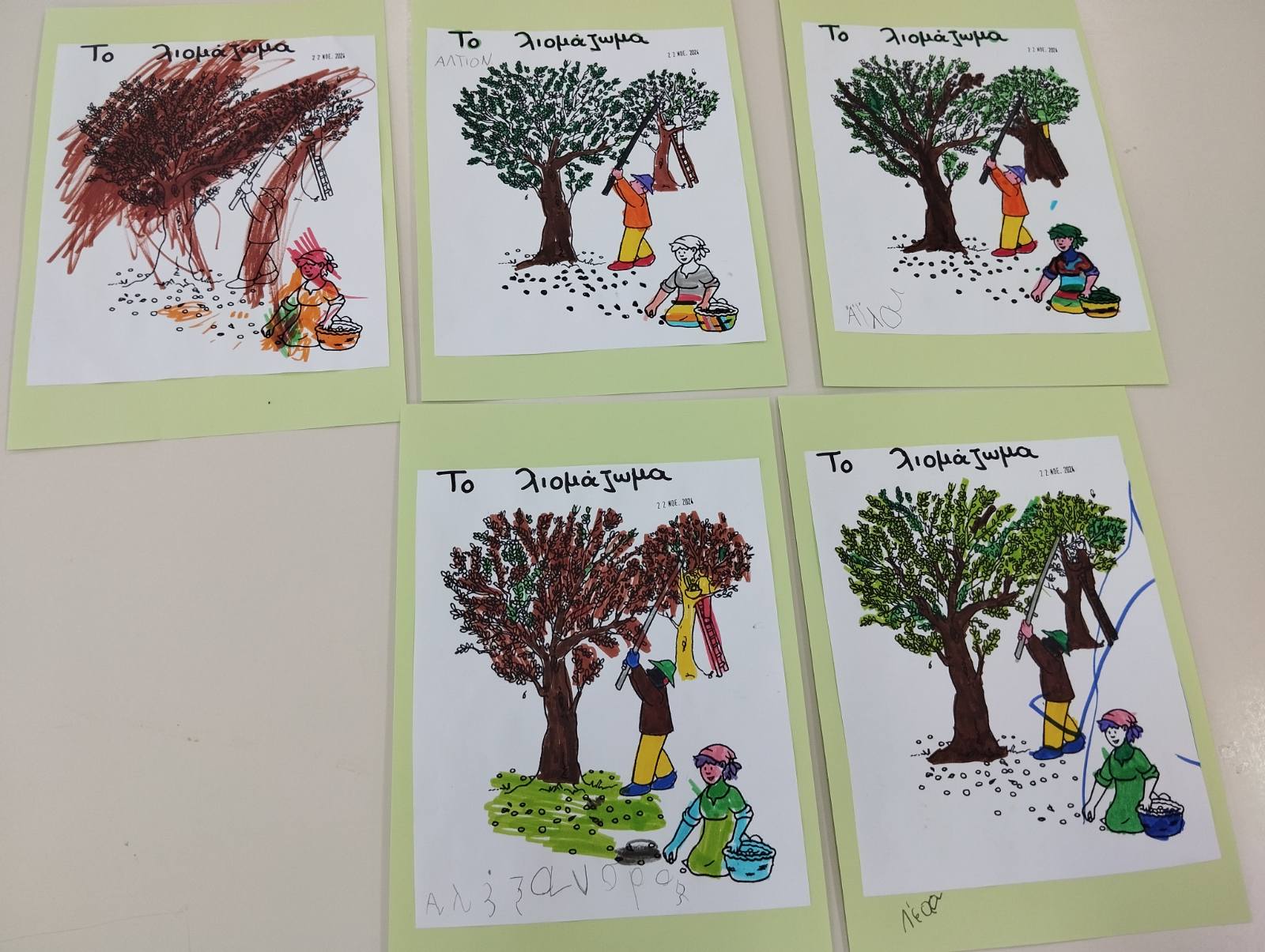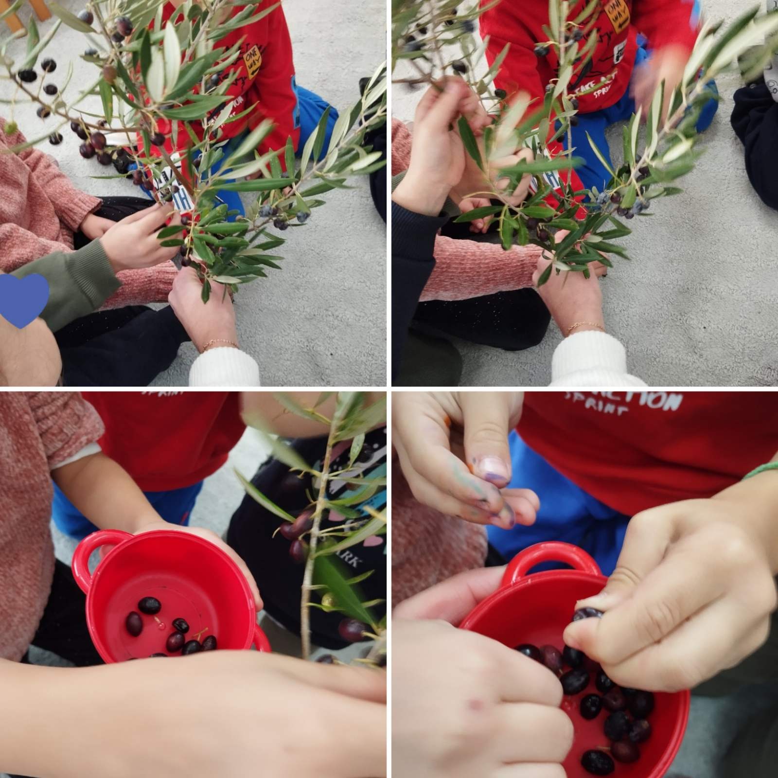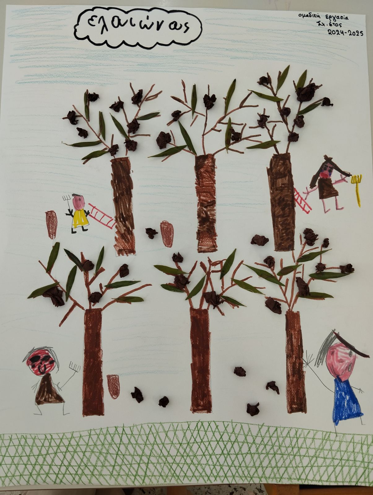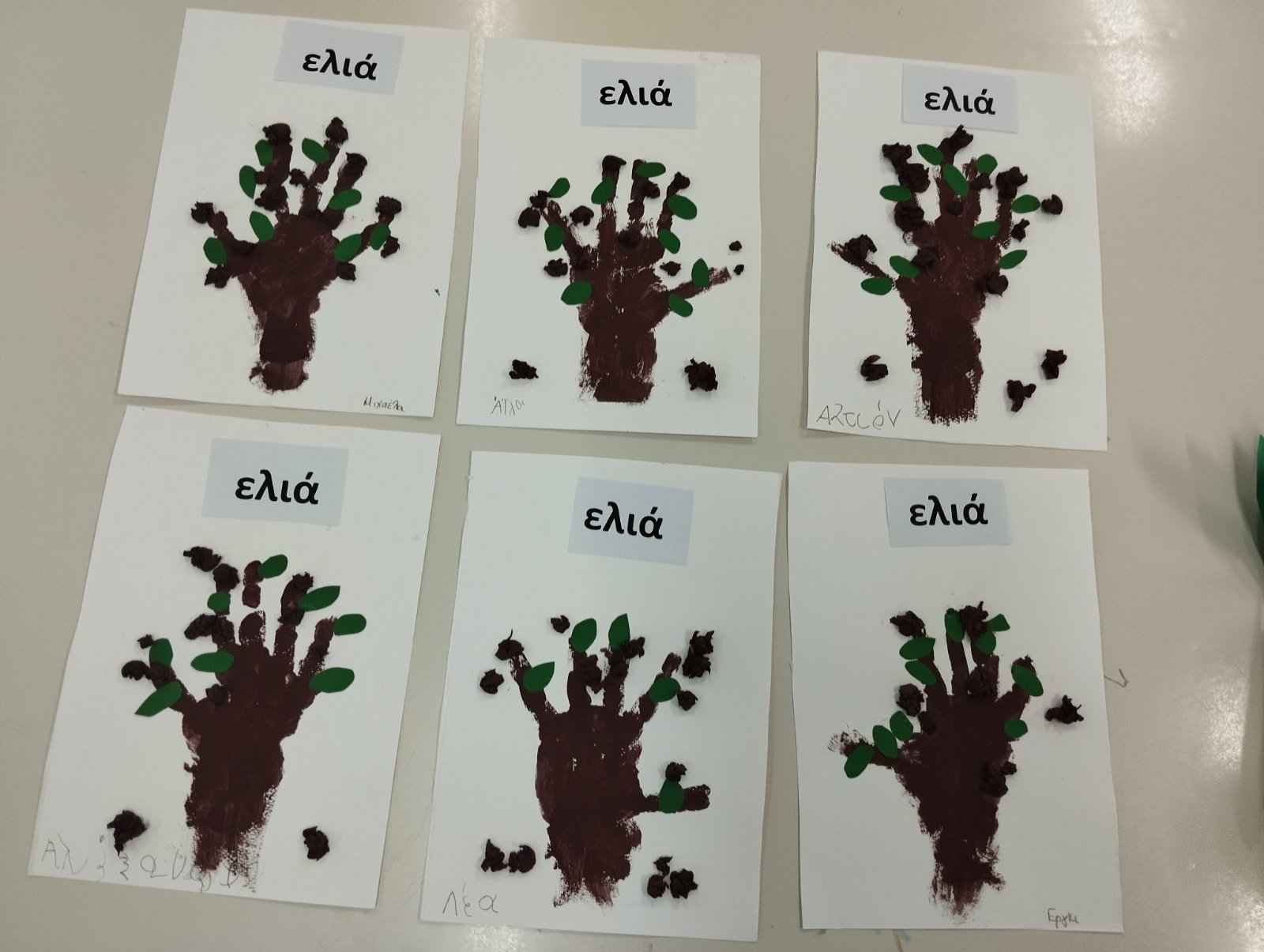 Στα πλαίσια της θεματικής ενότητας ” η ελιά και τα προϊόντα της” μιλήσαμε για το αιωνόβιο δέντρο την ελιά που καλλιεργούνταν από την αρχαία Ελλάδα και πόσο σημαντικό ρόλο είχε στη ζωή των αρχαίων Ελλήνων. Μάθαμε μύθους, ποιήματα και τραγούδια. Μιλήσαμε για το λιομάζωμα, τη διαδικασία παραγωγής του λαδιού και το πόσο πολύτιμο είναι στη ζωή μας το ελαιόλαδο. Είδαμε διάφορα προϊόντα που παρασκευάζονται με πρώτη ύλη το λάδι, φτιάξαμε λαδοκούλουρα, κάναμε κατασκευές ατομικές και ομαδικές, κάναμε φωνολογικές ασκήσεις με το γράμμα Ε, ε και παίξαμε διαδραστικά παιχνίδια.