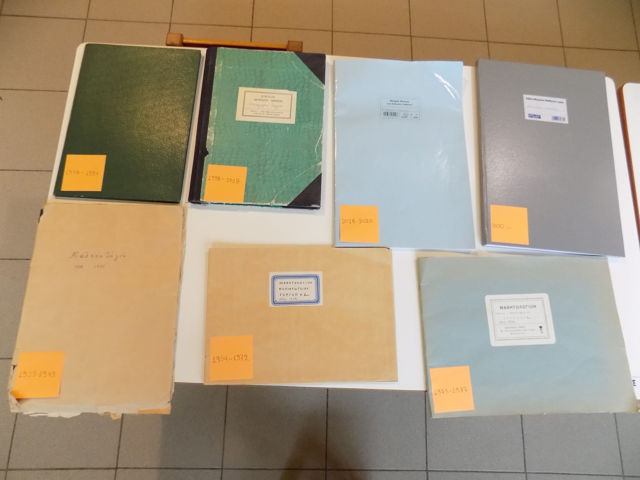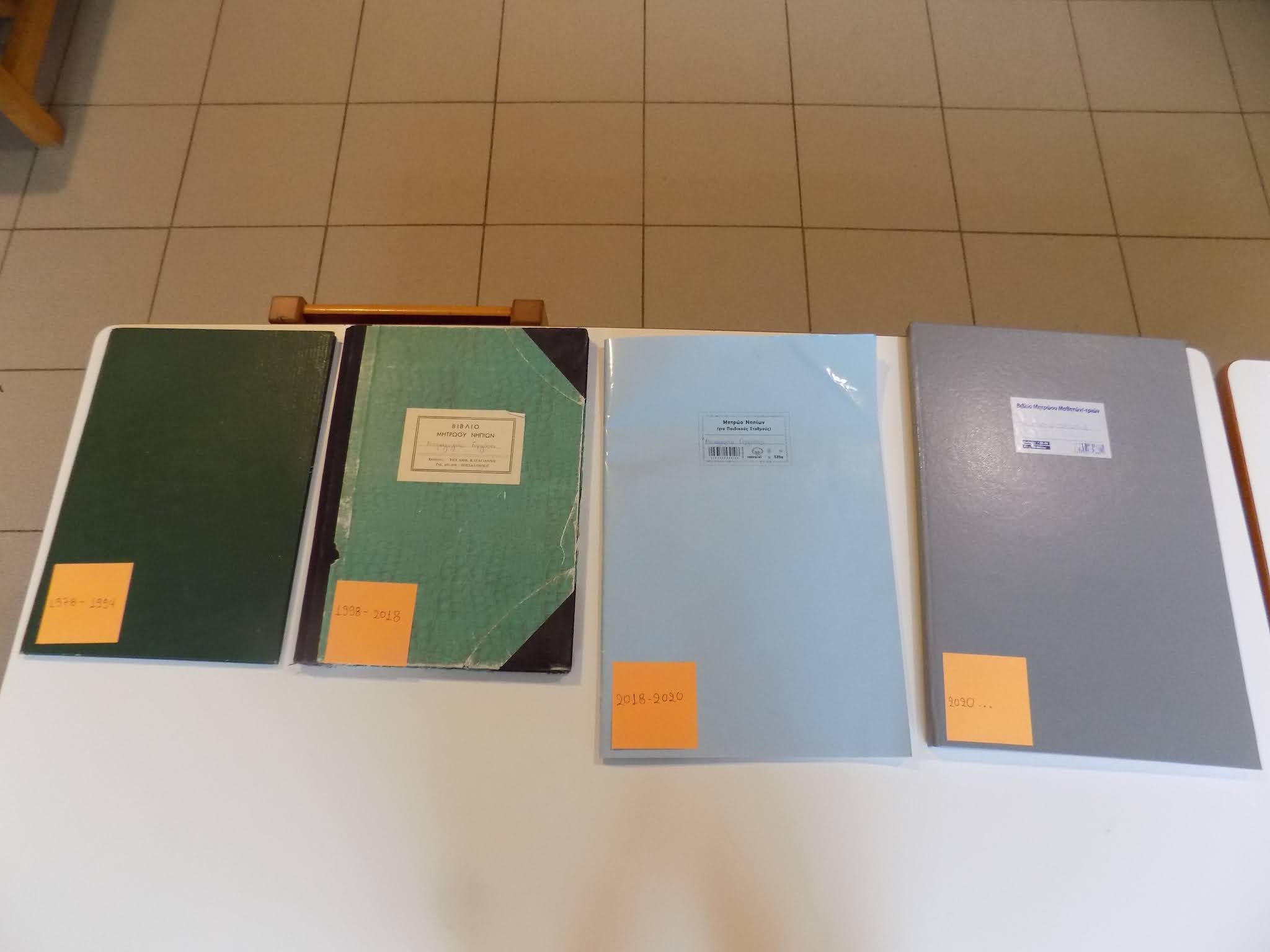Υπάρχουν 7 Μαθητολόγια στο αρχείο του Νηπιαγωγείου από το 1935- σήμερα (2021)