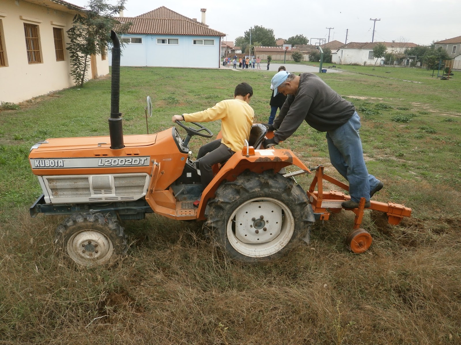 Το μέρος όργωσε ένας μαθητής της ΣΤ τάξης με το τρακτεράκι και τη βοήθεια του πατέρα του.