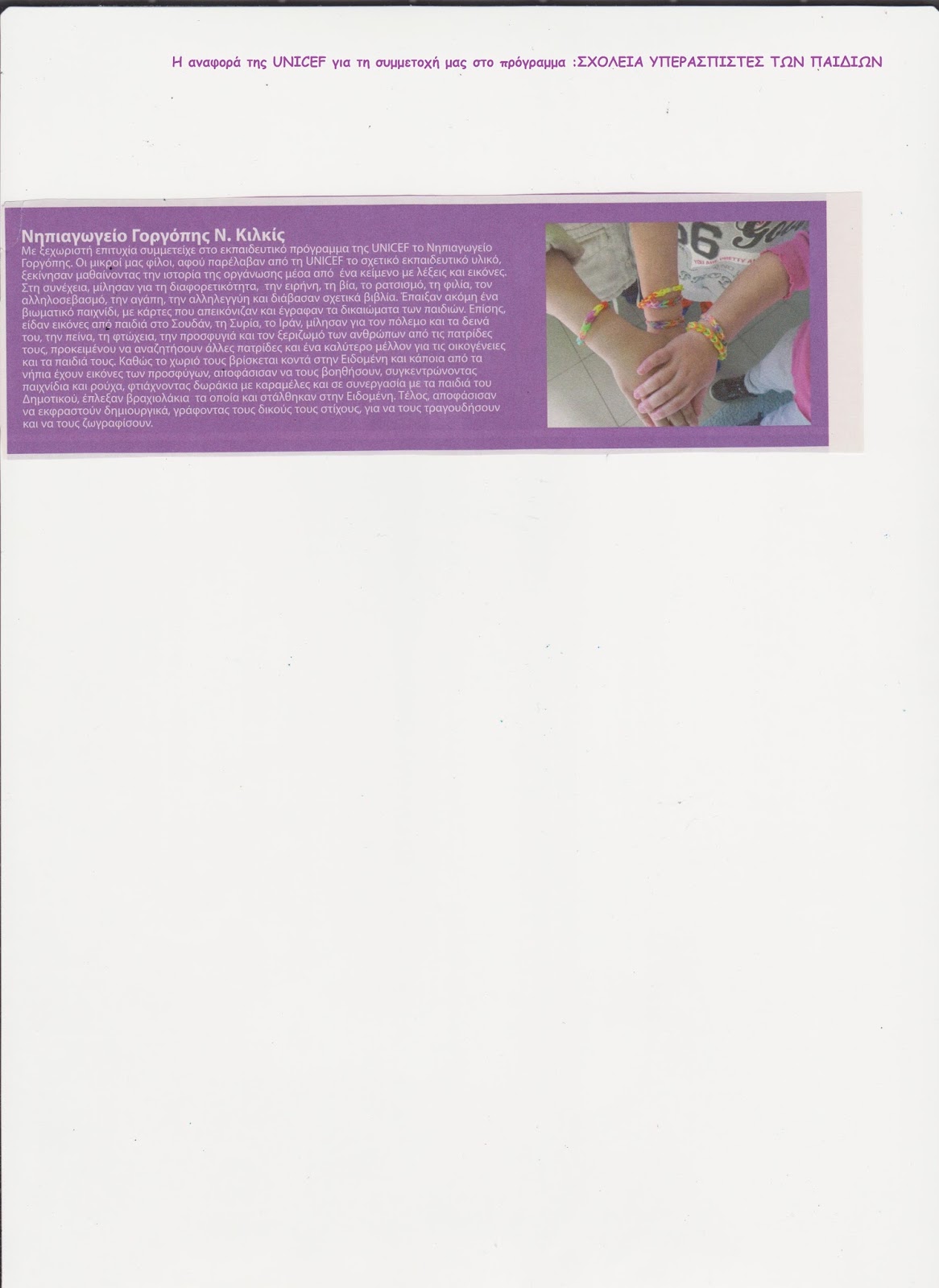 Αναφορά του περιοδικού της UNICEF για το Νηπιαγωγείο μας στο τευχος 103 Δεκέμβριος – Ιανουάριος- Φεβρουάριος.