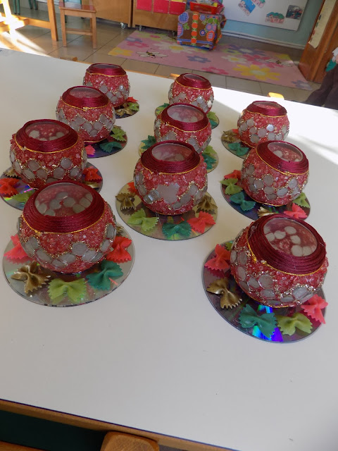 Με παλιά στολίδια , cds, και μακαρόνια φτάξαμε κηροπήγια