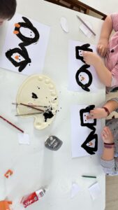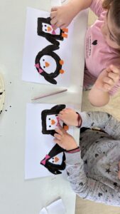 Συνεχίσαμε με τους αγαπημένους μας Πιγκουίνους! Συζήτηση για τους Πιγκουίνους, που ζουν τι τρώνε κτλ δείχνοντας και αντίστοιχο εποπτικό υλικό. Καθώς είχαμε δει στο βίντεο παραπάνω ότι δεν υπάρχει μόνο Βόρειο Σέλας αλλά και Νότιο, οι μαθητές θέλησαν να κάνουμε και το Νότιο Σέλας με τους Πιγκουίνους, καθώς μάθαμε ότι οι πιγκουίνοι ζουν στον Νότιο Πόλο. Έτσι, οι μαθητές αφού σχεδίασαν ο καθένας τον δικό του πιγκουίνο, έπειτα δημιουργήσαμε με τέμπερες το Νότιο Σέλας με αποχρώσεις του κόκκινου και του κίτρινου.