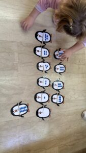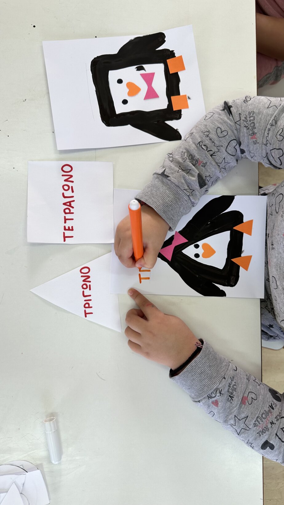 Παραλλήλως, διαβάσαμε το παραμύθι “Ο Λίνος ο μικρός Πιγκουίνος” και με αφορμή το Παραμύθι μάθαμε τα σχήματα. Στη συνέχεια, τα παιδιά έφτιαξαν πιγκουίνους σε διάφορα σχήματα και τα κολλήσαμε στην γωνία των μαθηματικών.