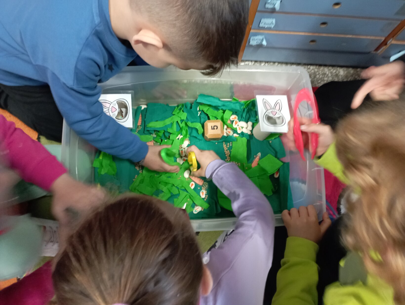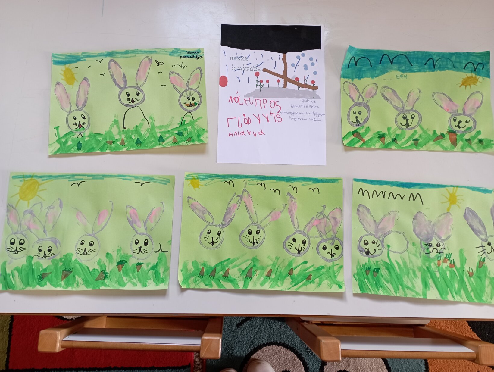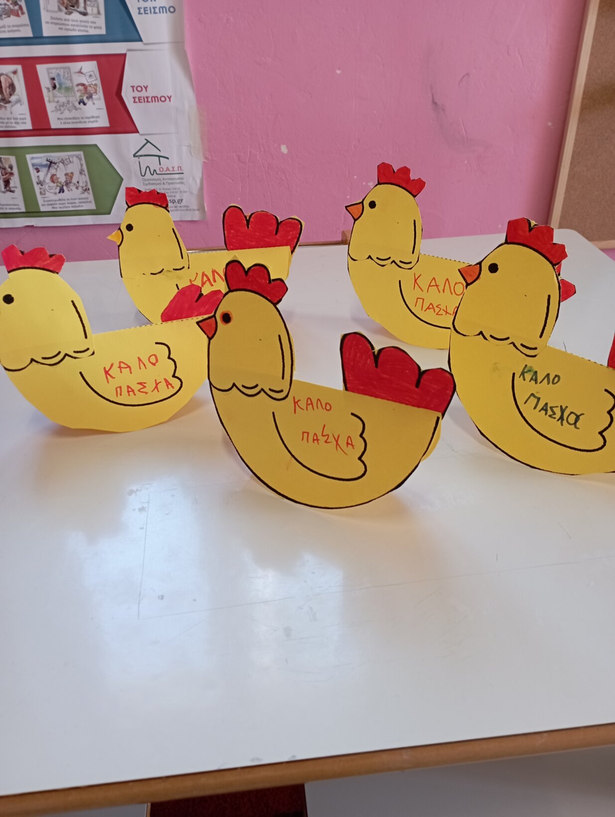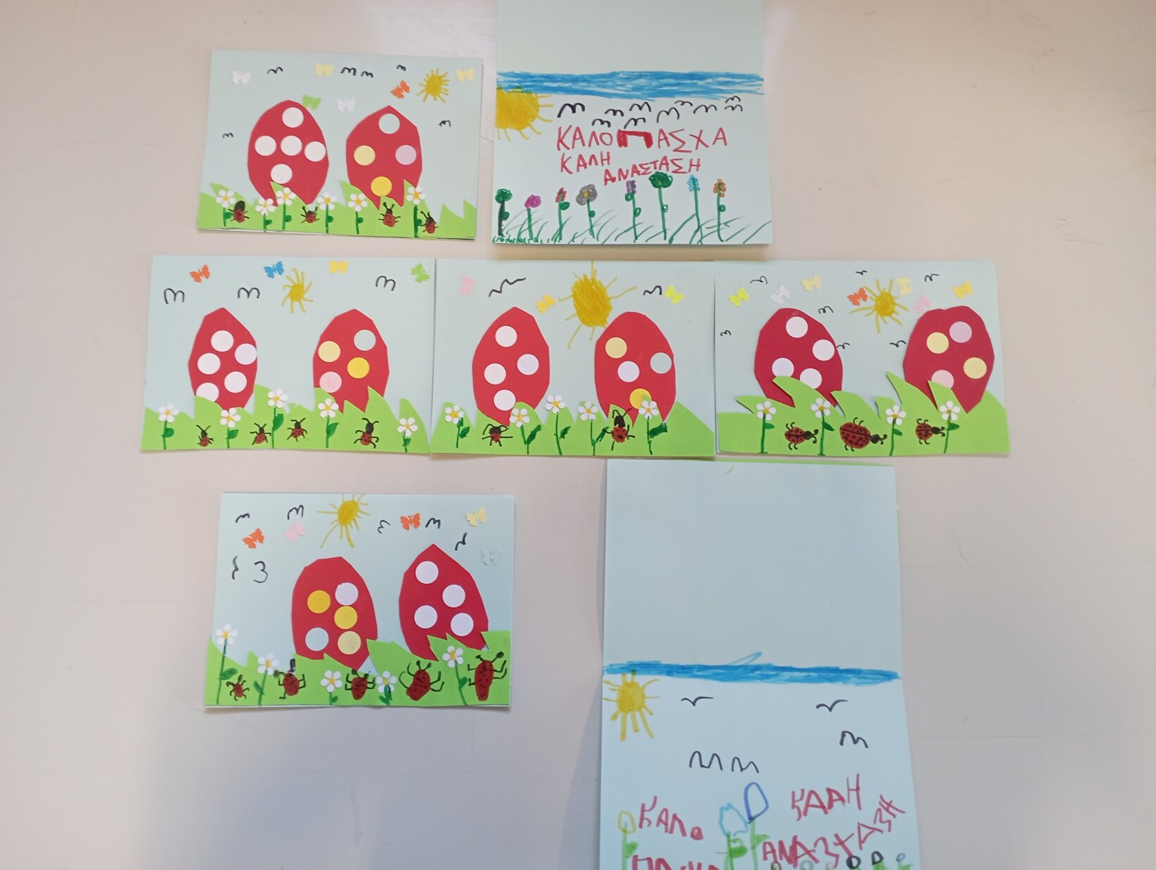 Η προσέγγιση της θεματικής ενότητας του Πάσχα έγινε με γνώμονα τα ενδιαφέροντα και τις εμπειρίες των μαθητών. Ένα γράμμα έφτασε στο σχολείο μας και μας παρακίνησε να το διαβάσουμε. Το γράμμα ήταν η αφορμή να ξεκινήσουμε να συζητάμε με τα παιδιά για τα ήθη, τα έθιμα, τις παραδόσεις αλλά και για τα γεγονότα του Πάσχα. Αφού καταγράφηκαν οι ιδέες των μαθητών σε εννοιολογικό χάρτη, ακολούθησαν διάφορες πασχαλινές αποστολές, που τα νηπιάκια μας έφεραν για μια ακόμη φορά εις πέρας.. Μιλήσαμε για τον κύκλο ζωής της κότας, παίξαμε διάφορα ψυχοκινητικά, βιωματικά, μαθηματικά, γλωσσικά και αισθητηριακά παιχνίδια, τσουγκρίσαμε αυγά, τραγουδήσαμε τα κάλαντα του Λαζάρου, ζωγραφίσαμε στον υπολογιστή και κάναμε διάφορες πασχαλινές κατασκευές…