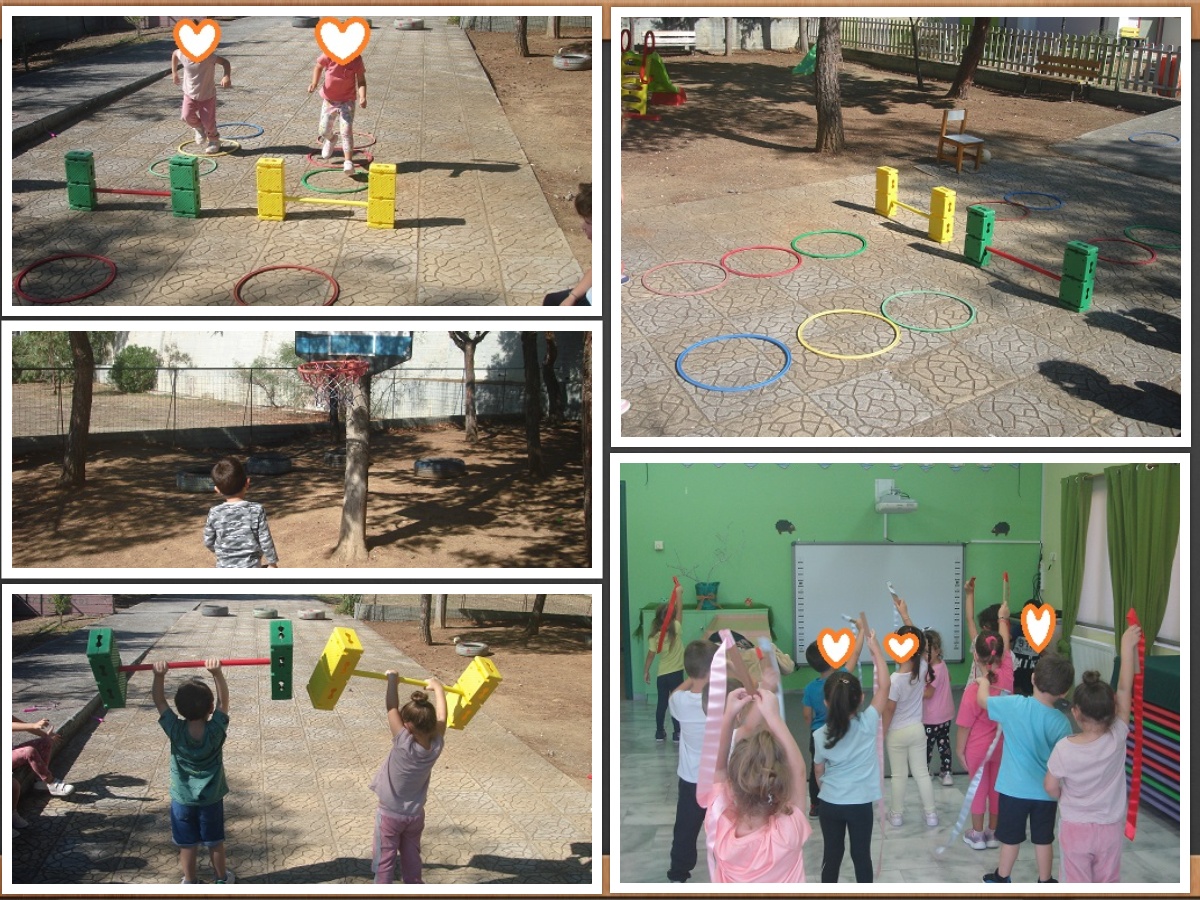 Υλοποιήσαμε διάφορες αθλητικές δραστηριότητες, παιχνίδια κ.α στην τάξη και στην αυλή του σχολείου μας… ρυθμική γυμναστική με κορδέλες, μπάσκετ, διαδρομές, στεφάνια, εμπόδια…..