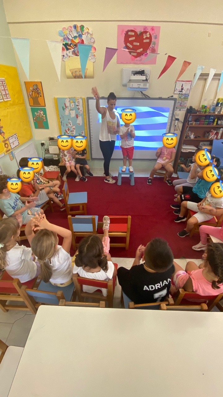 Η ημέρα ξεκίνησε μέσα στην τάξη, όπου τα παιδιά παρακολούθησαν σύντομα βίντεο για διάφορα αθλήματα και συζήτησαν με τους νηπιαγωγούς για τη σημασία της σωματικής άσκησης, της συνεργασίας και της προσπάθειας. Μέσα από φύλλα εργασίας και ζωγραφιές, τα παιδιά αποτύπωσαν τι σημαίνει για εκείνα «να αθλούμαι με χαρά».