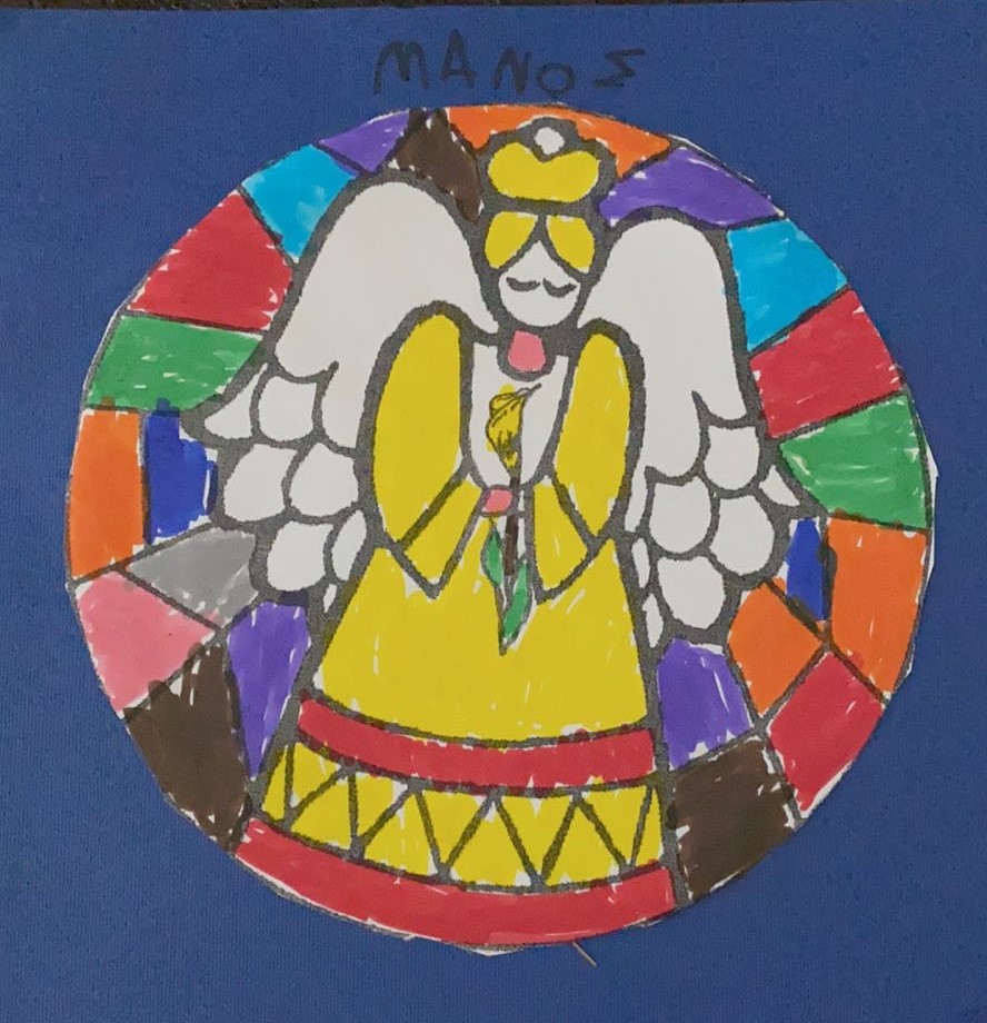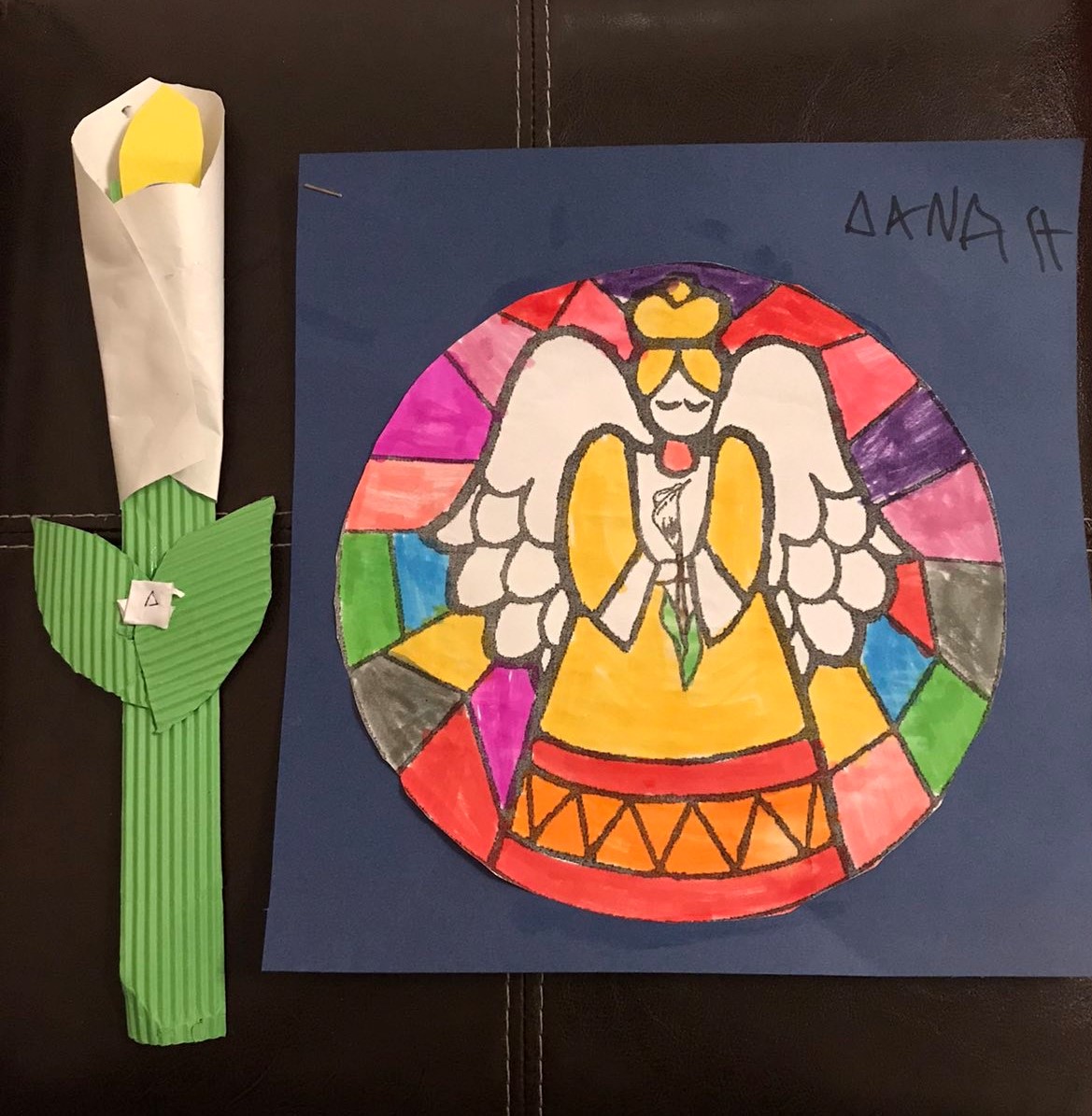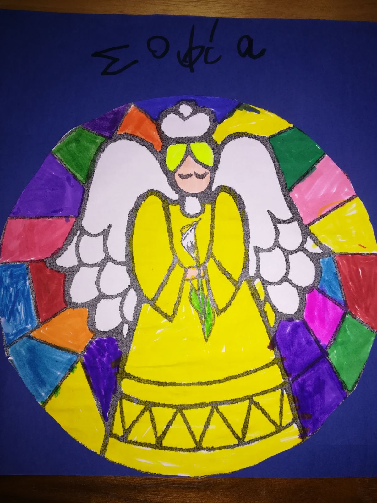 Ο Ευαγγελισμός της Παναγίας ( τεχνική βιτρώ) και ο κρίνος της Παναγίας