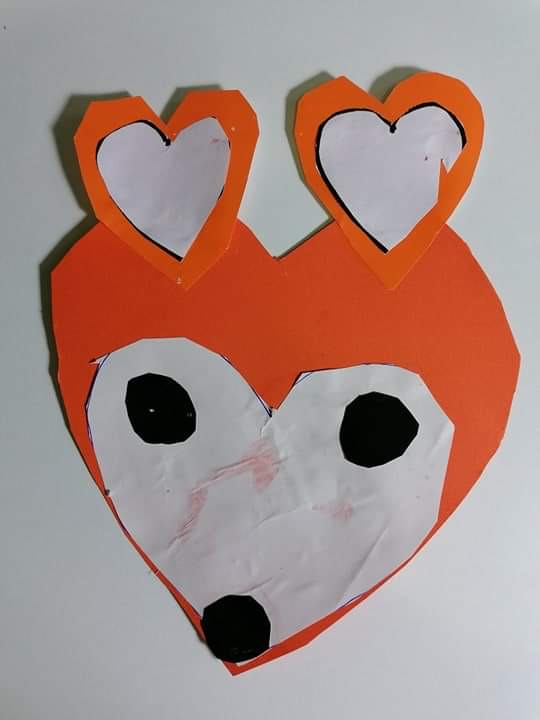 Και επειδή και τα ζώα έχουν καρδιά, όπως είναι ο τίτλος του περιβαλλοντικού προγράμματος το οποίο έχουμε αναλάβει για φέτος, αποφασίσαμε να φτιάξουμε μια αλεπού με καρδιές. το αποτέλεσμα ήταν πολύ ωραίο.