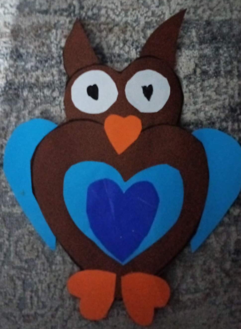 Φτιάξαμε την κουκουβάγια με καρδούλες από κανσόν χαρτόνια